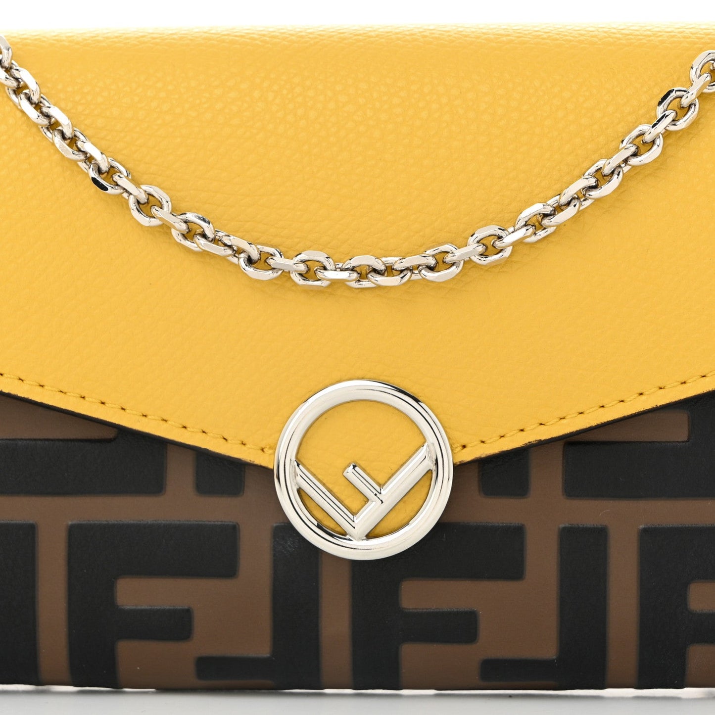 Fendi/ Bags/ Wallet Style /Fendi Vitello Cruise F is Fendi Bi-Color FF 1974 Embossed Continental Envelope Wallet On Chain Maya Yellow