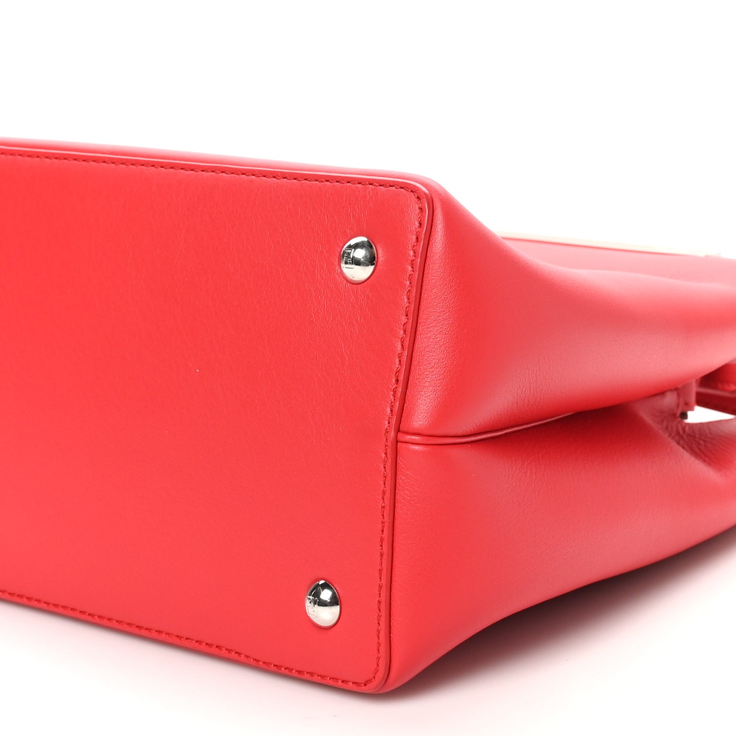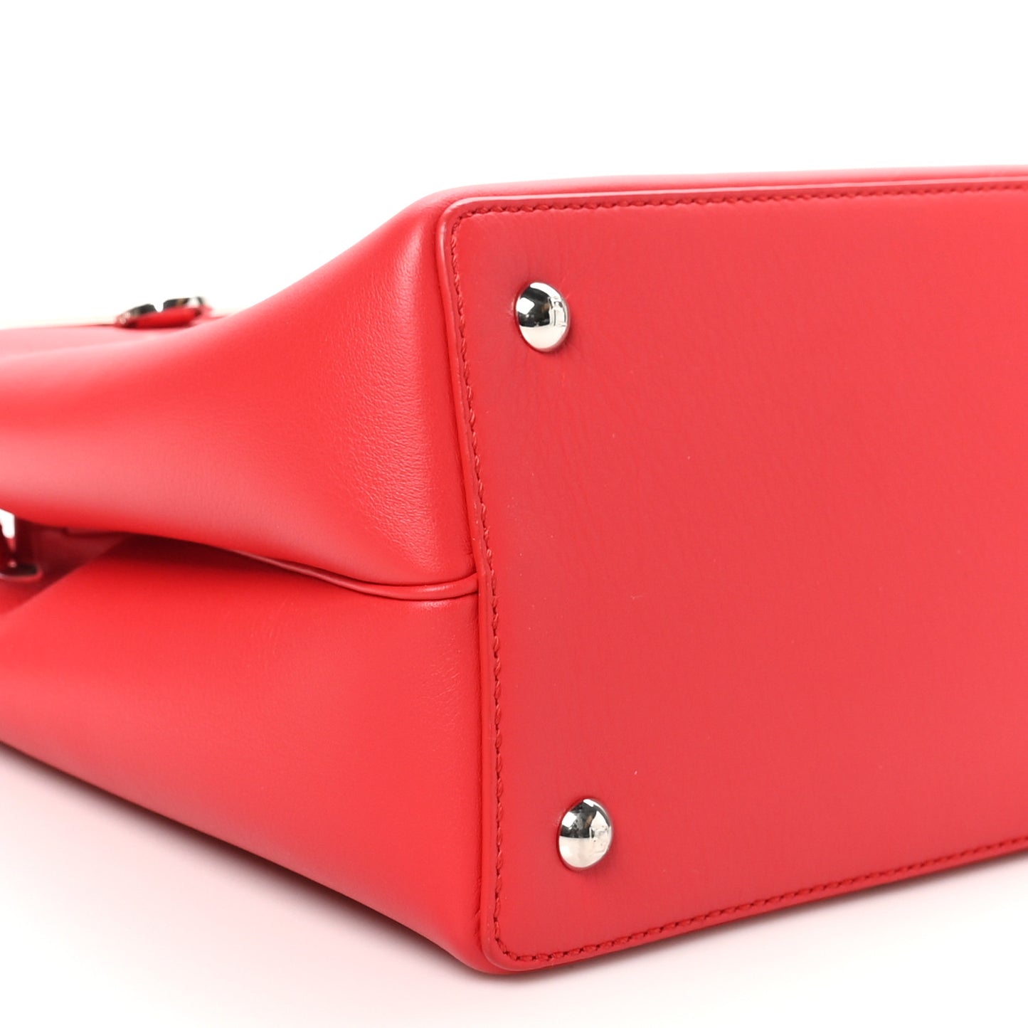 This is an authentic FENDI Vitello Elite Petite 2Jours Tote in Fiamma and Ardesia. This stylish tote is crafted of red calfskin leather. The bag features rolled leather top handles, an optional shoulder strap, and expandable sides with a silver and pink frame top. This opens to a light blue leather interior with a zippered central compartment.Follow this item for alerts. Fendi is a registered trademark of Fendi. FASHIONPHILE is not affiliated with Fendi.