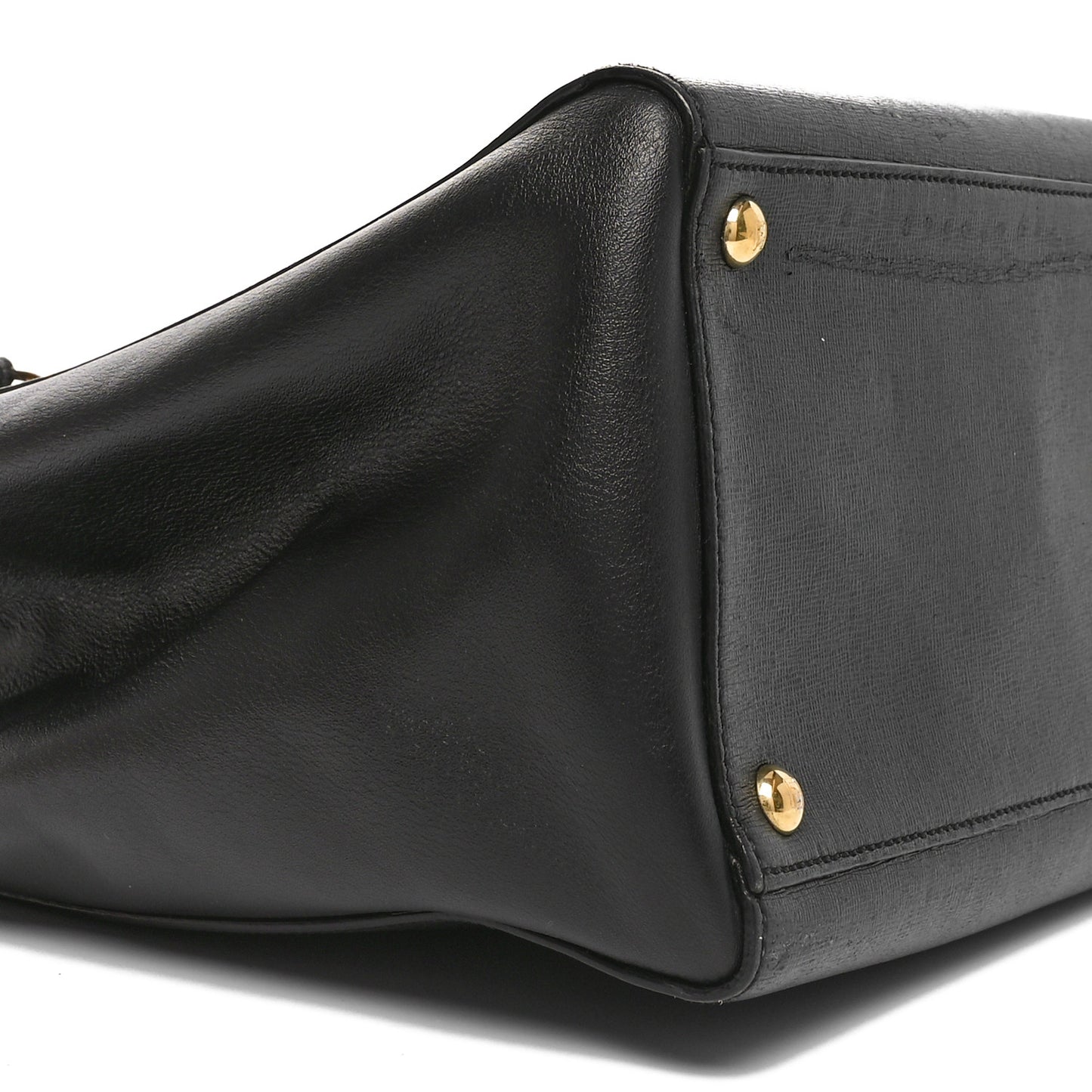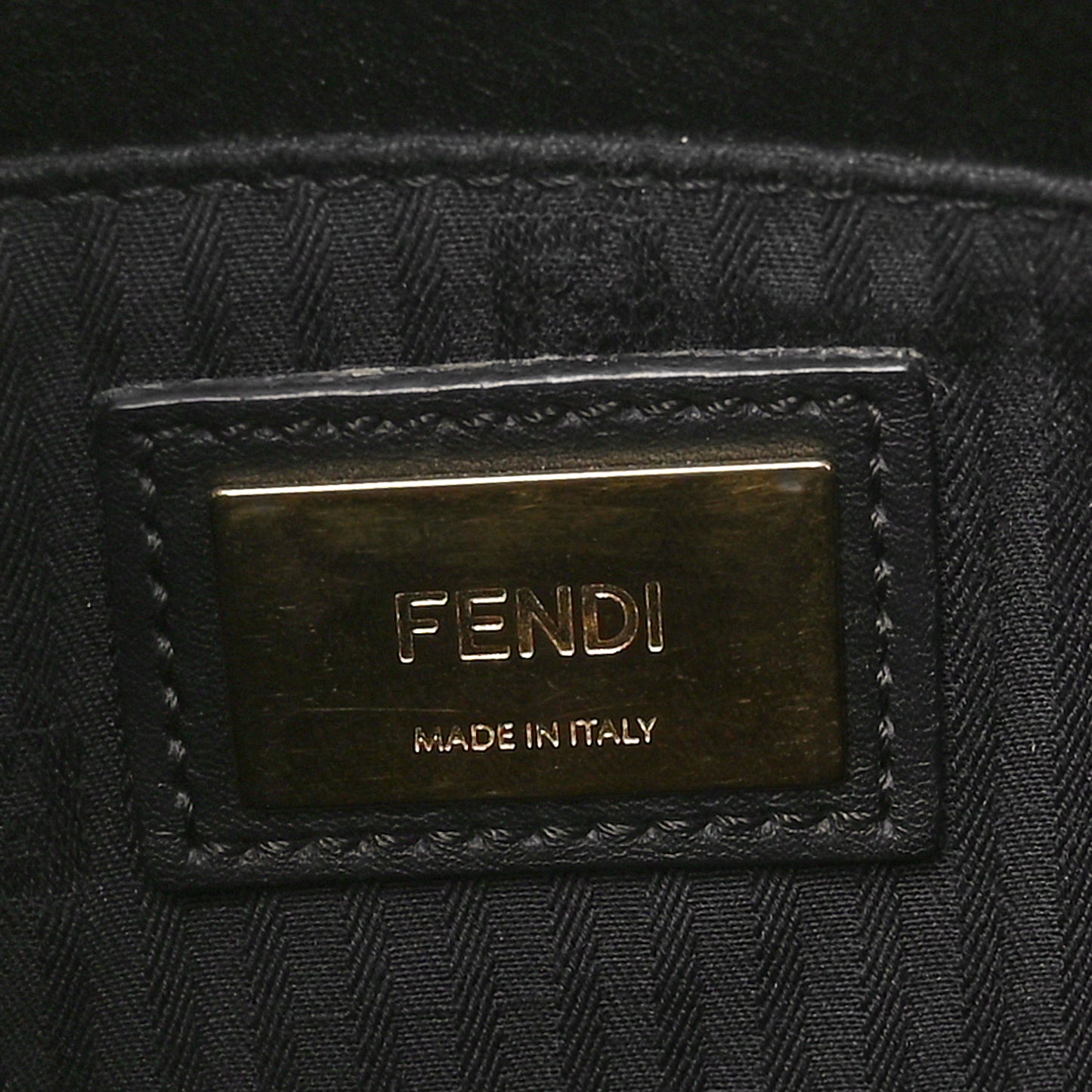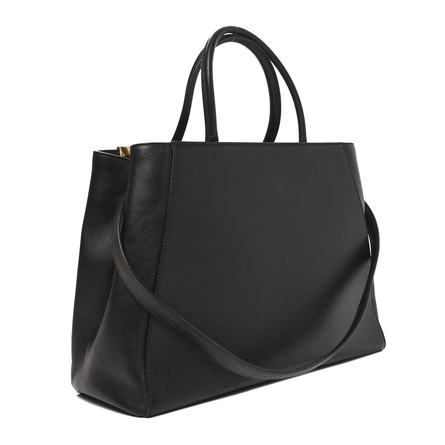 This is an authentic FENDI Vitello Elite 2Jours Tote in Black. This tote is crafted of multi textured calfskin leather in black. The shoulder bag features rolled leather top handles, an optional shoulder strap, smooth expansive sides, a polished brass top frame, and a wide open top. The top frame unsnaps to a partitioned striped black fabric interior with a central zipper pocket.Follow this item for alerts. Fendi is a registered trademark of Fendi. FASHIONPHILE is not affiliated with Fendi.