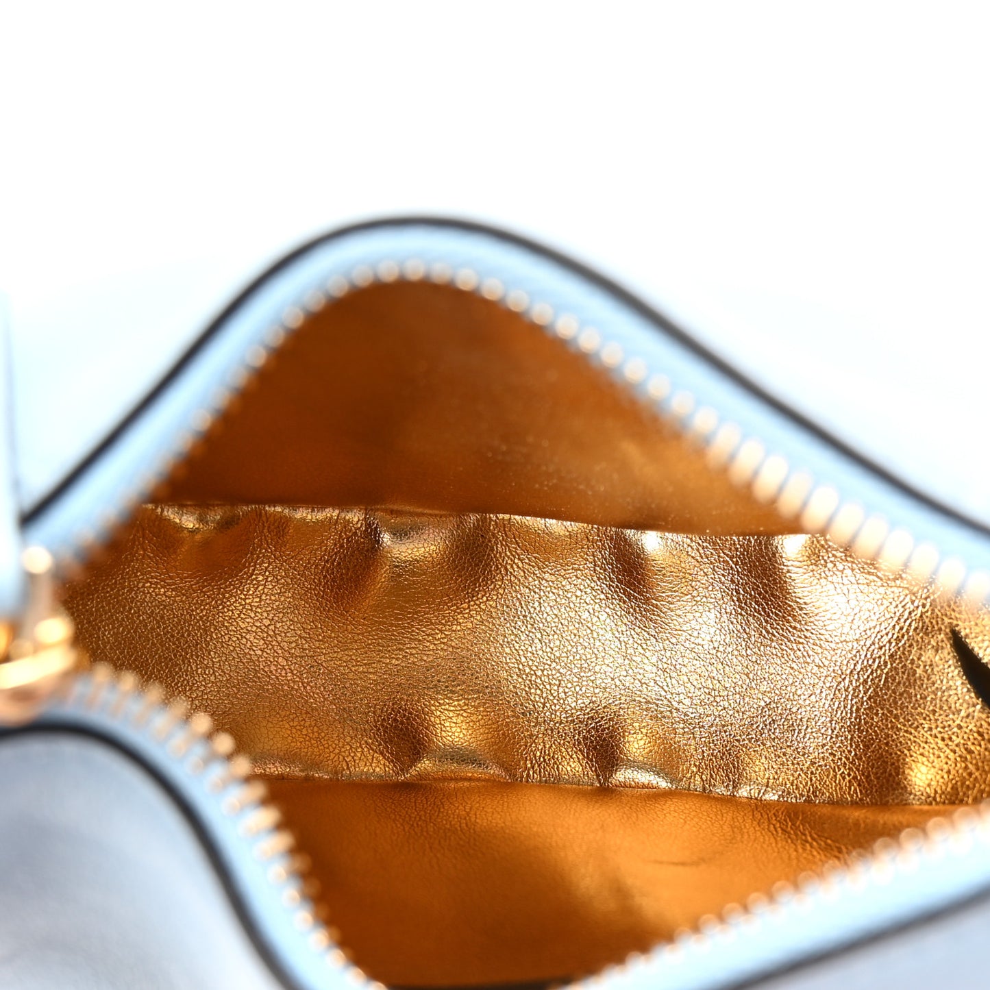 This is an authentic FENDI Vitello Grace Matte Nano Fendigraphy Hobo Charm in Azzurro Baby. This stylish bag charm is crafted in smooth light blue leather with a gold-tone logo at the base and gold-tone hardware. The top opens to a metallic gold leather interior.Follow this item for alerts. Fendi is a registered trademark of Fendi. FASHIONPHILE is not affiliated with Fendi.