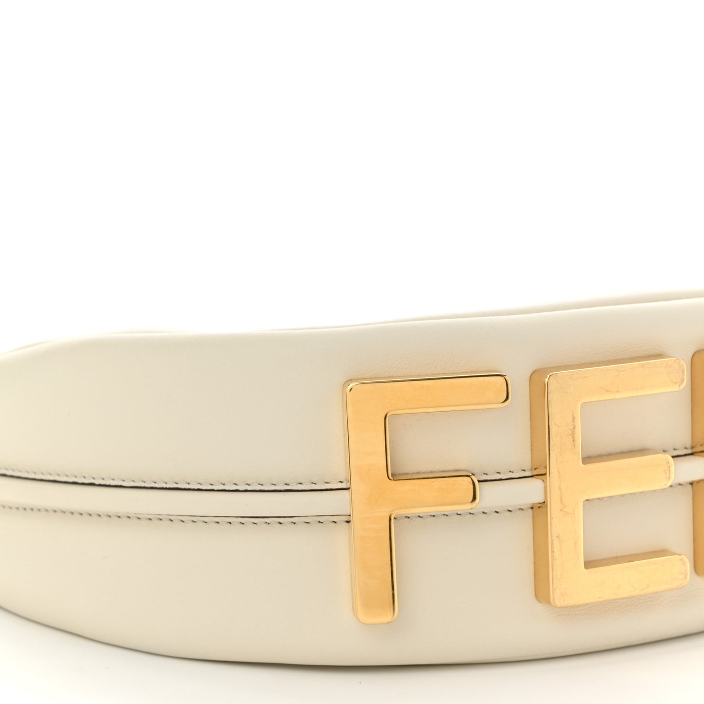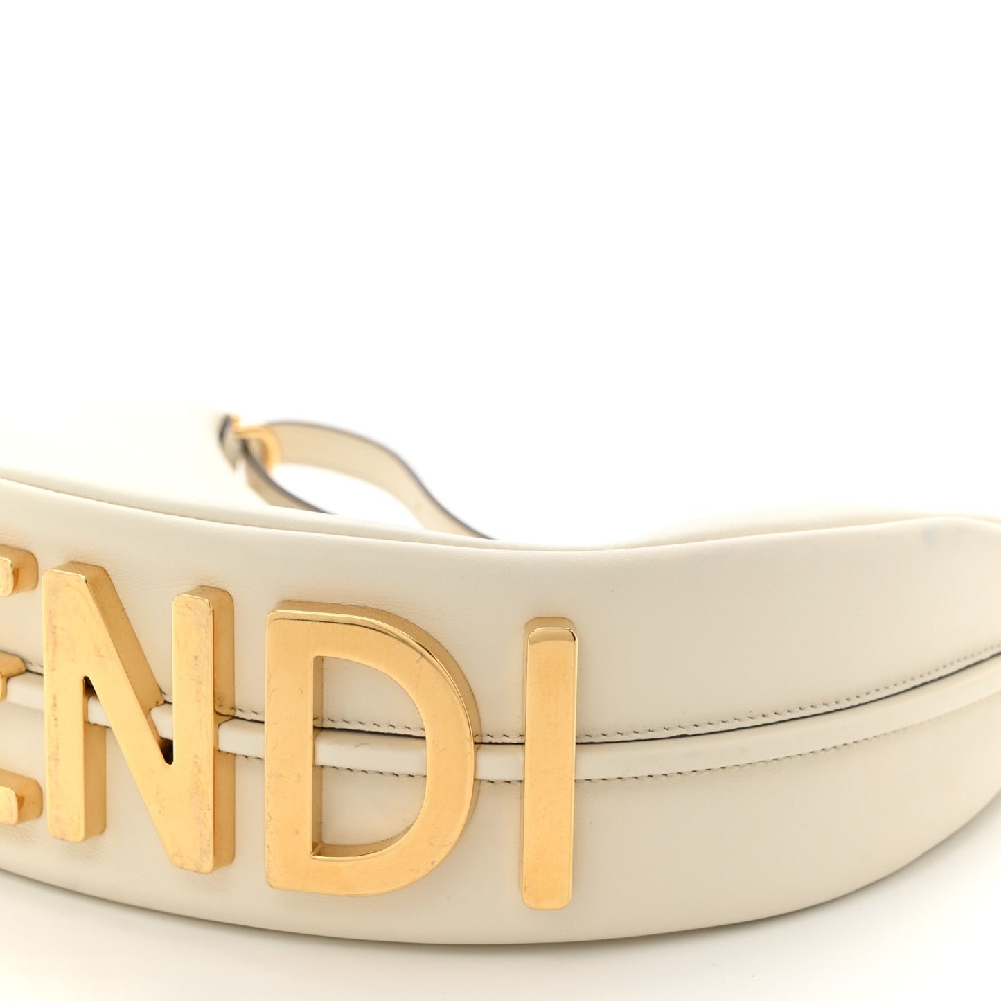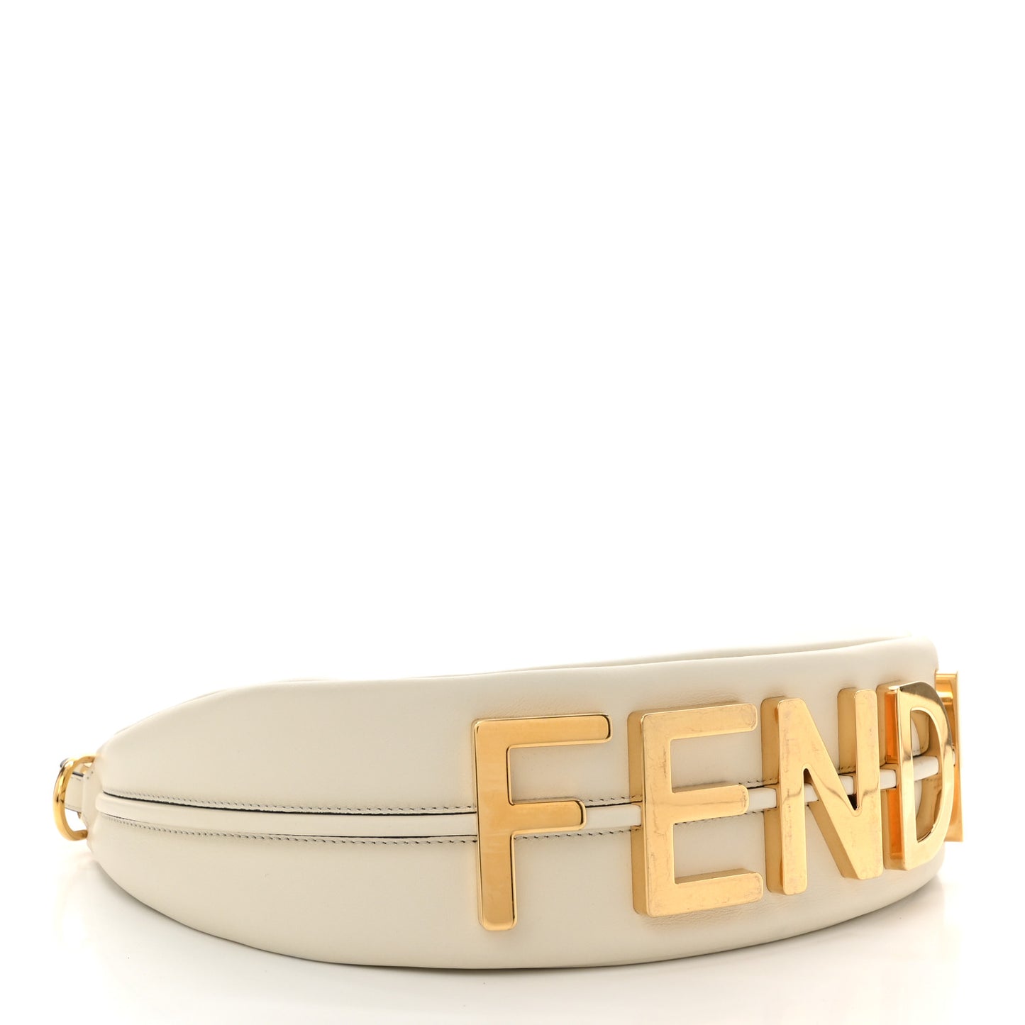 This is an authentic FENDI Vitello Grace Matte Small Fendigraphy Hobo Bag in White Ice. This stylish shoulder bag is crafted in smooth white leather. The bag features five gold-tone feet at the base spelling out FENDI, an optional leather shoulder strap, and gold-tone hardware. The top zipper opens to a spacious dark brown fabric interior.Follow this item for alerts. Fendi is a registered trademark of Fendi. FASHIONPHILE is not affiliated with Fendi.
