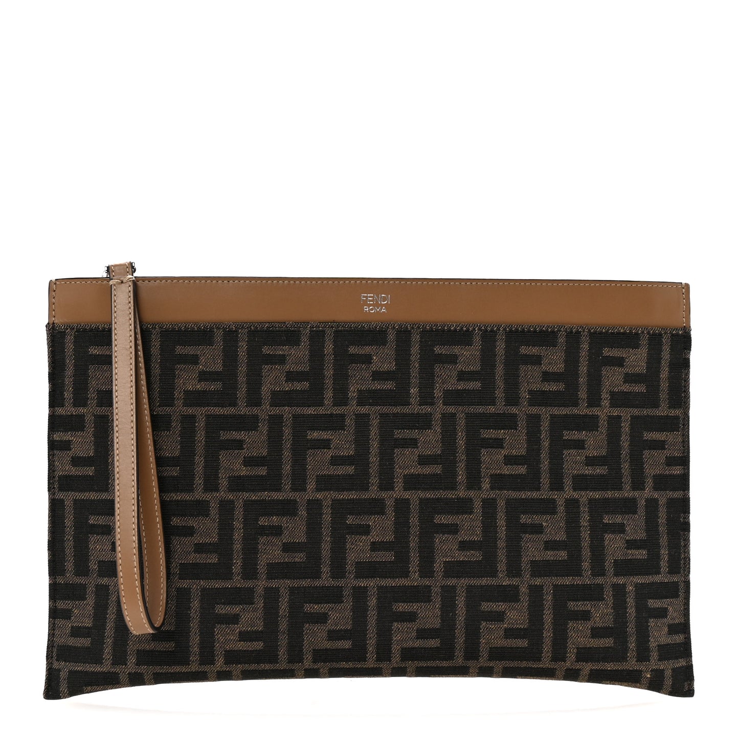 Fendi/ Accessories/ Handbags /Fendi Vitello King Jacquard FF 1974 Medium Flat Pouch Tobacco Moro Sand