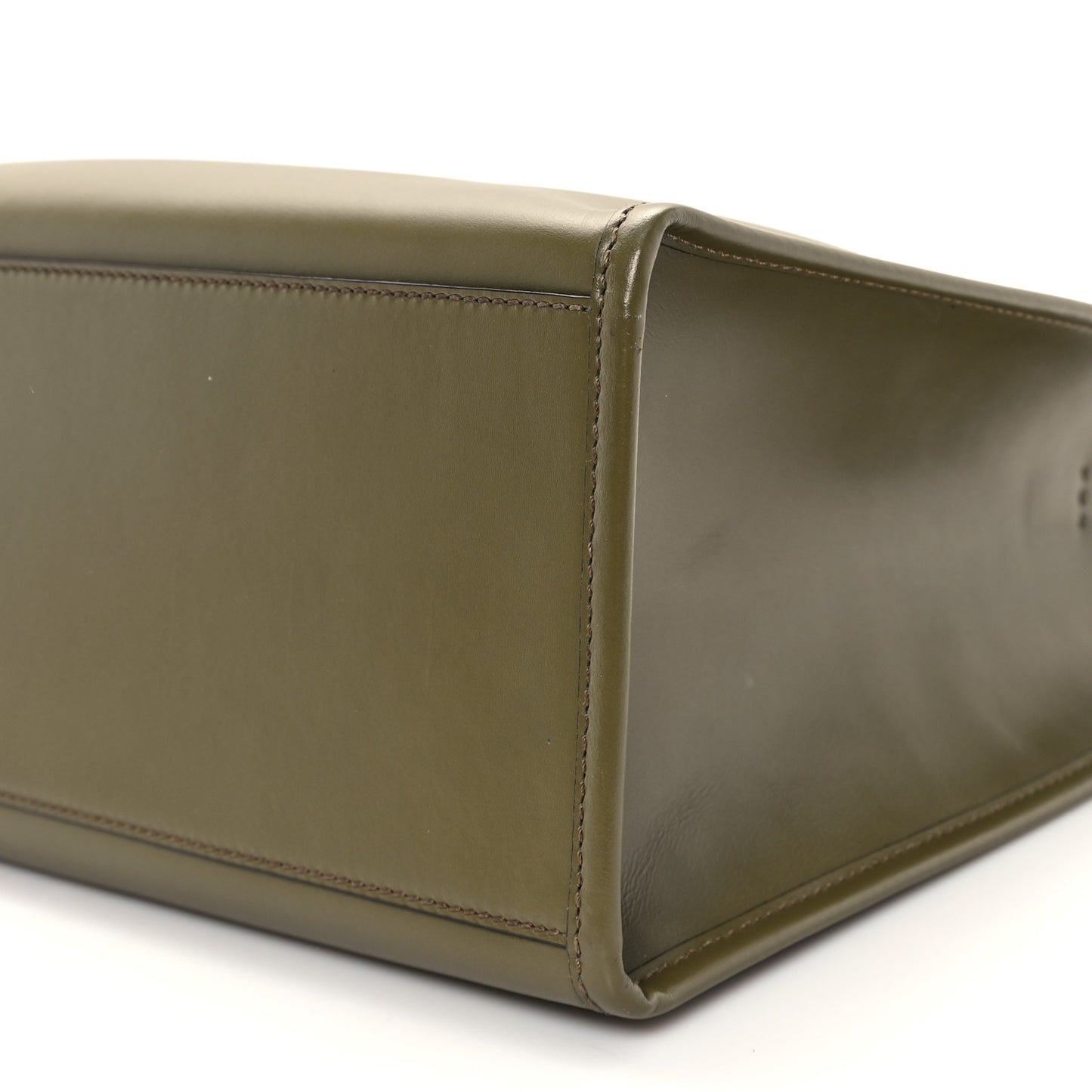 This is an authentic FENDI Vitello King Plexiglass Logo Embossed Medium Fendi Sunshine Shopper Tote in Wood. This stylish shopping tote is crafted in green leather with stitched detailing, and features resin tortoise shell top handles, gold hardware and a bold, embossed Fendi logo. The top opens to a spacious interior with a leather base.Follow this item for alerts. Fendi is a registered trademark of Fendi. FASHIONPHILE is not affiliated with Fendi.