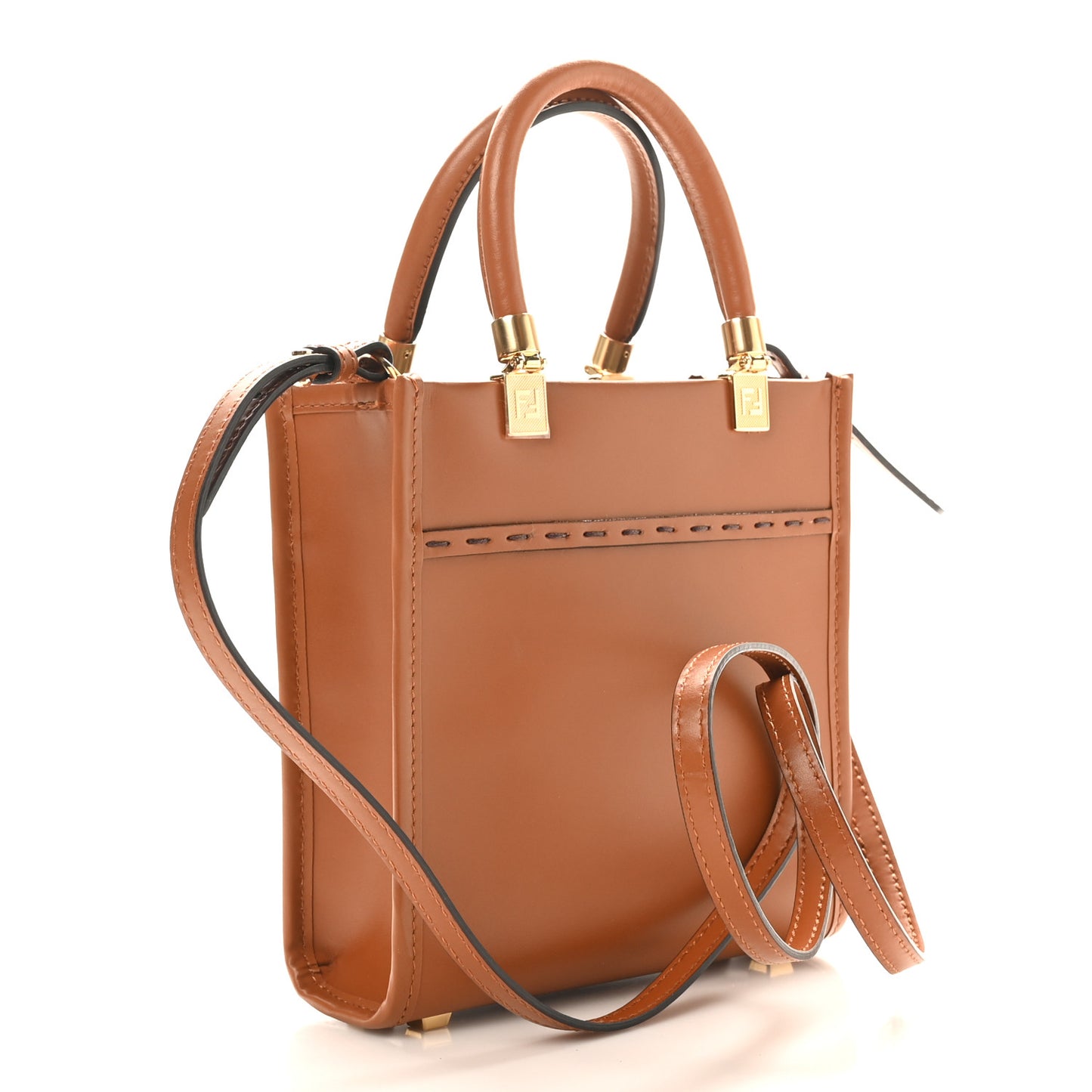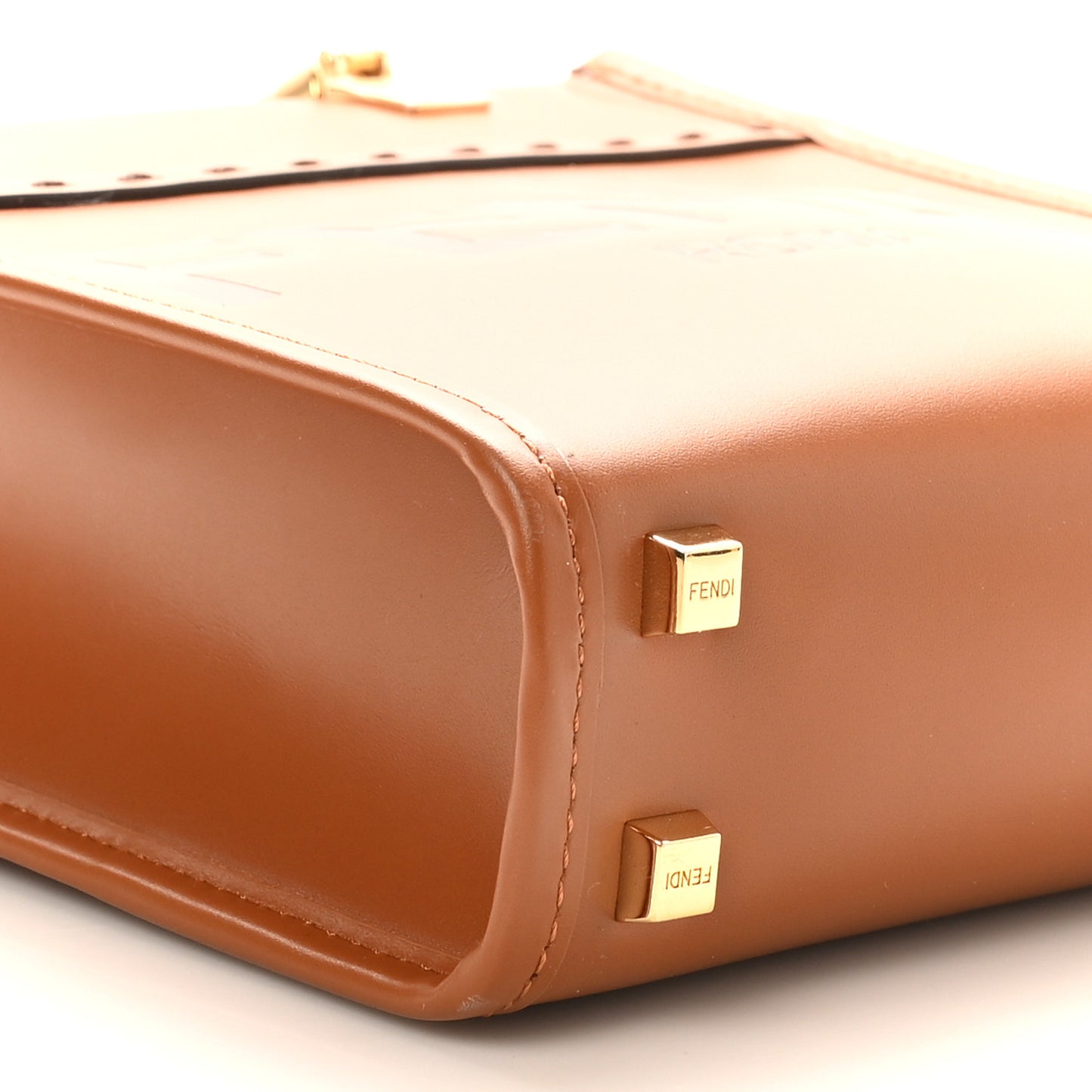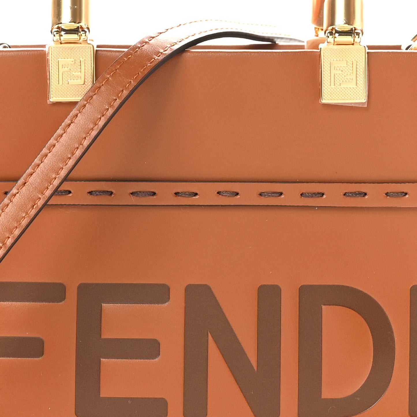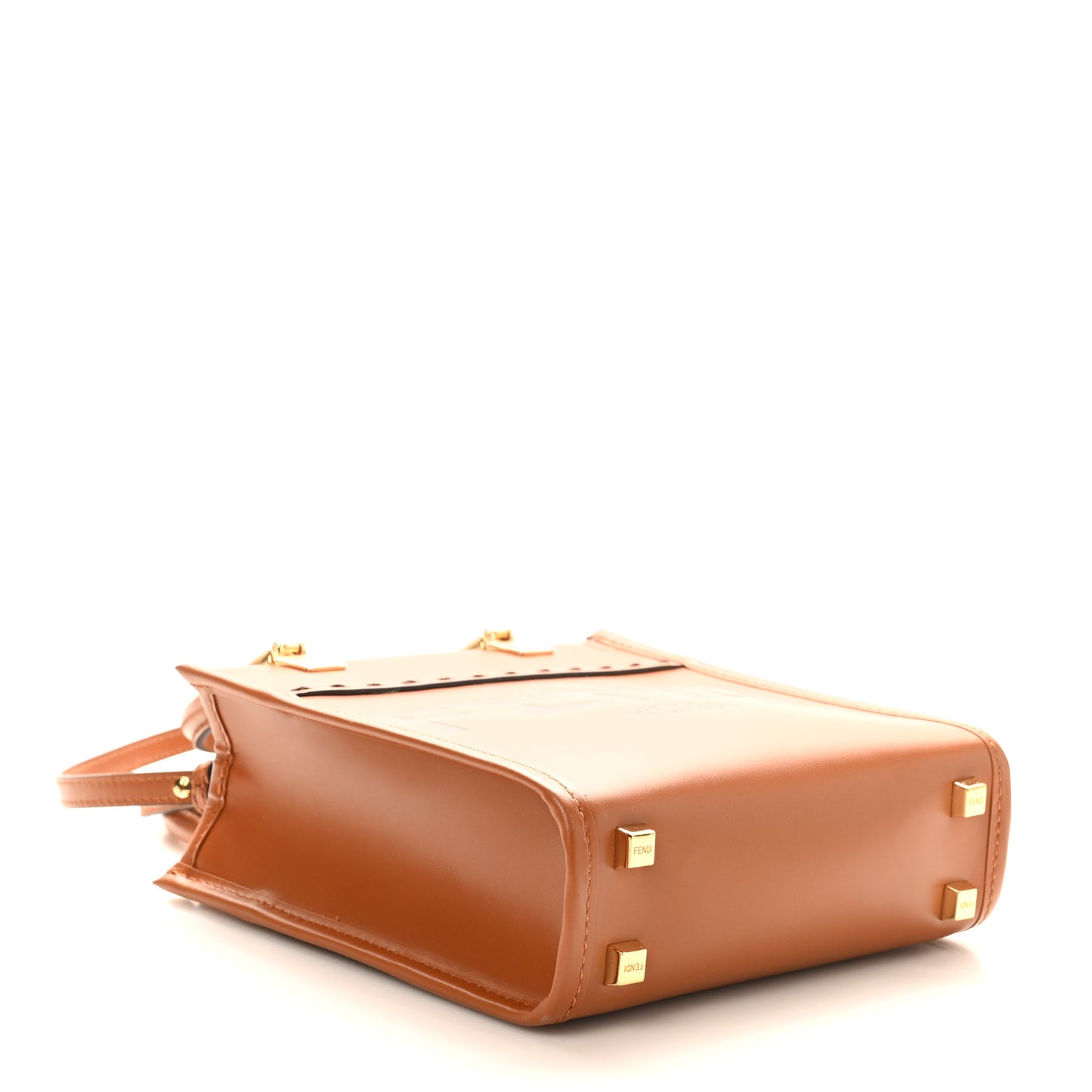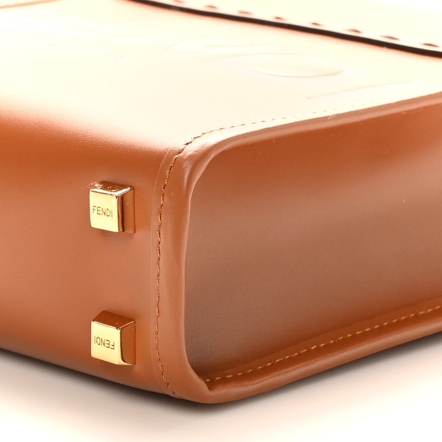 Fendi/ Bags/ Shoulder Bags /Fendi Vitello King Plexiglass Logo Embossed Mini Fendi Sunshine Shopper Tote Cuoio