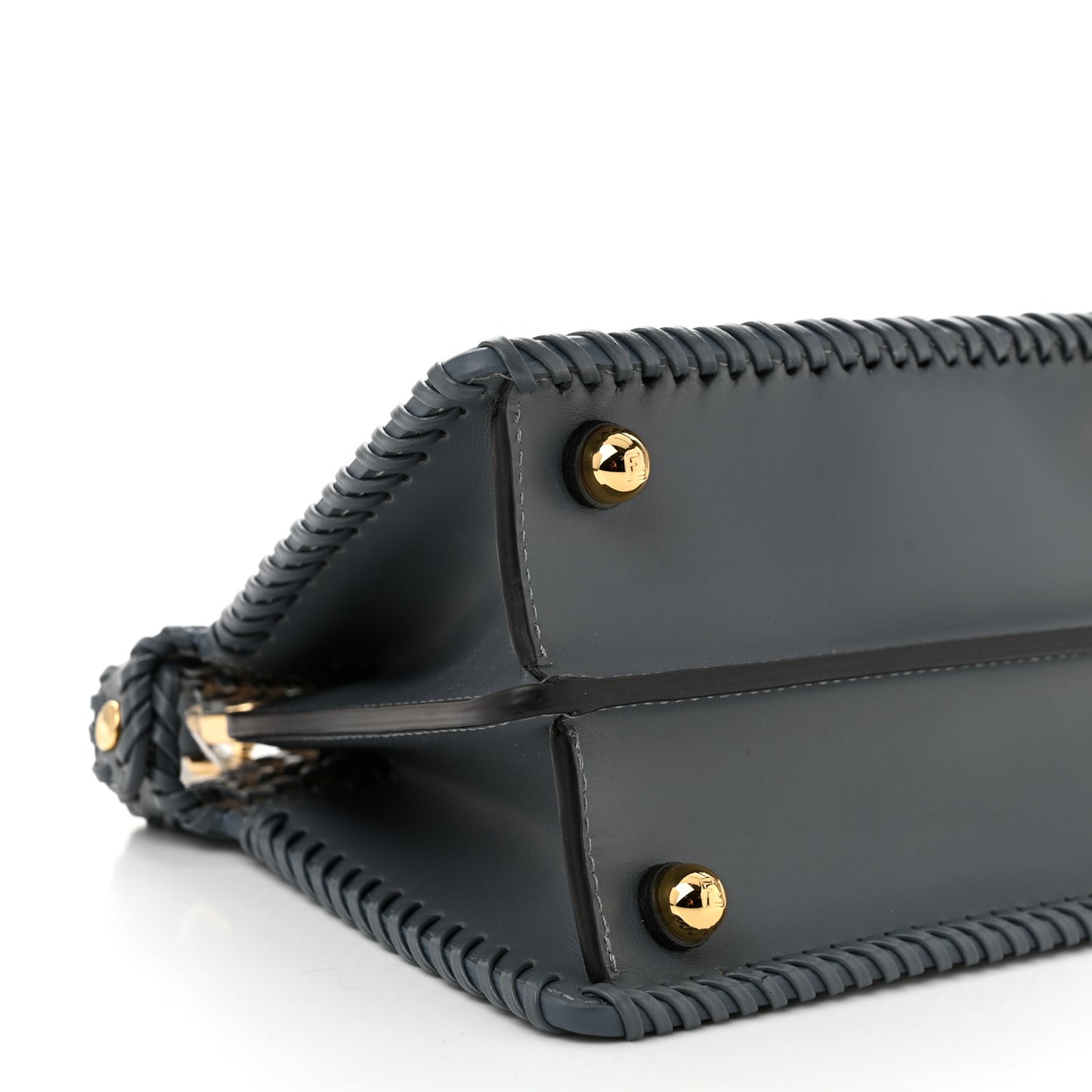 This is an authentic FENDI Vitello King Shiny Nappa Intreccio Petite Peekaboo I SEE U Satchel in Tempesta. This chic tote is finely crafted of grey calfskin leather. This mini-sized bag features gold squared turn locks on either side that when released, relax the outer layer to reveal the inner panel of grey leather and beige suede with a gold metal bar. It can be carried as a shoulder bag with the optional adjustable shoulder strap or a tote by the top handle.Follow this item for alerts. Fendi is a registered trademark of Fendi. FASHIONPHILE is not affiliated with Fendi.