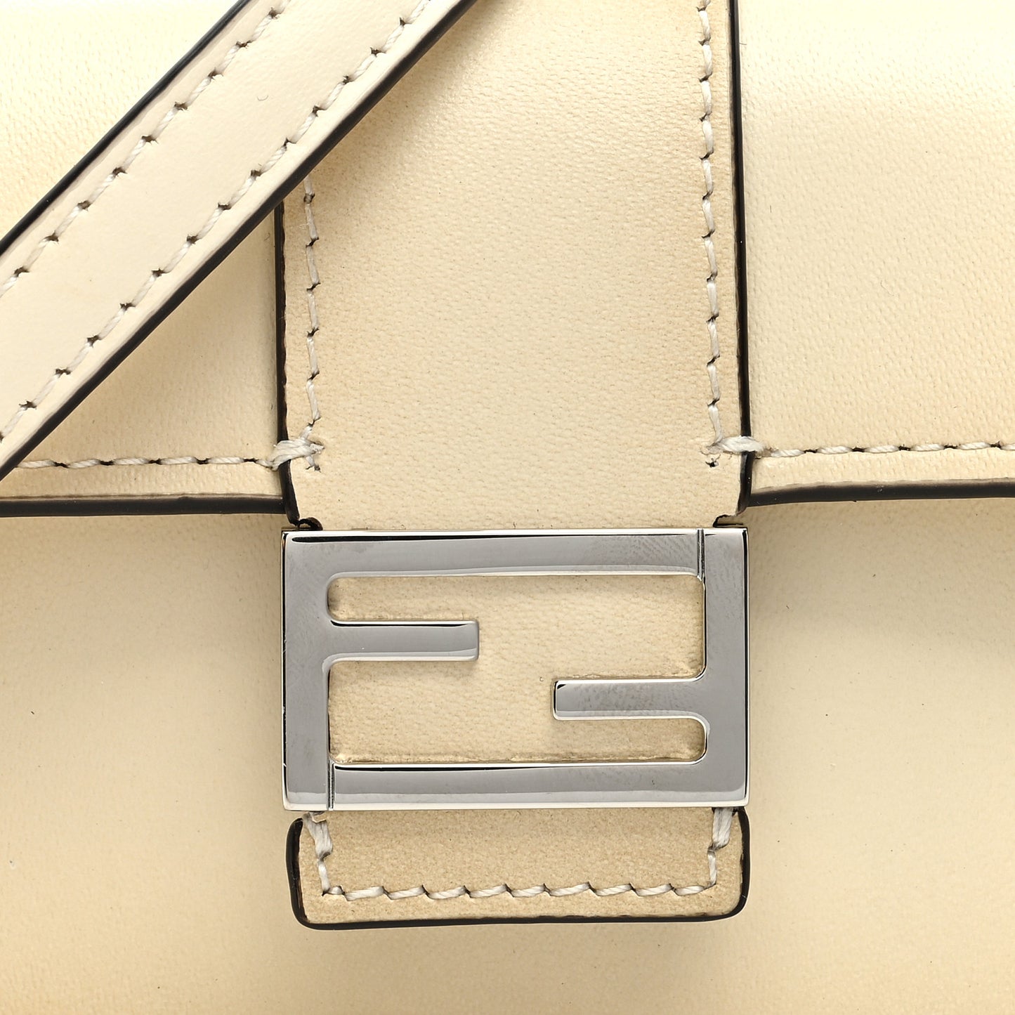 Fendi/ Bags/ Shoulder Bags /Fendi Vitello King Tamponato Micro Flat Baguette White Ice