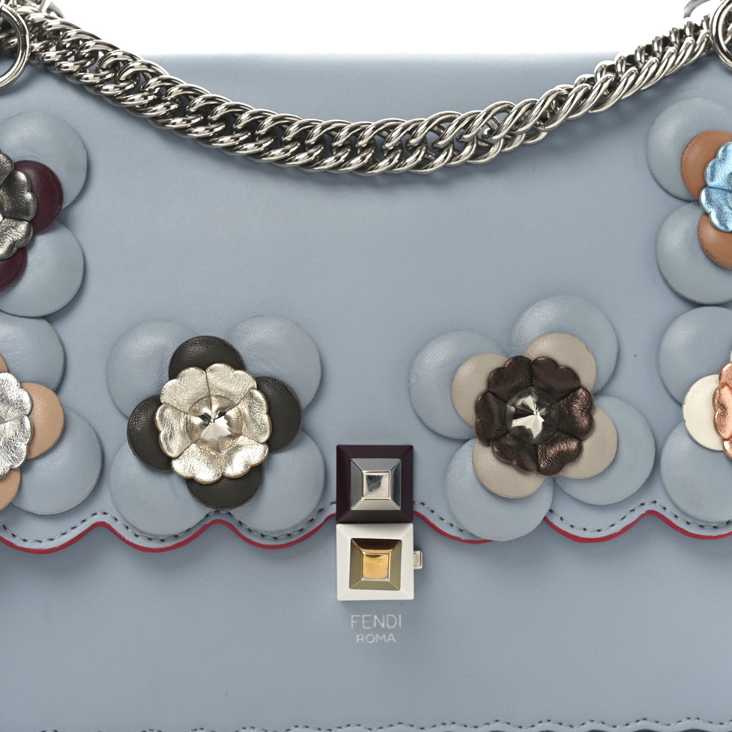 Fendi/ Bags/ Shoulder Bags /Fendi Vitello Liberty Lucido Flowerland Scalloped Studded Kan I Shoulder Bag Azzurro Polvere Multicolor