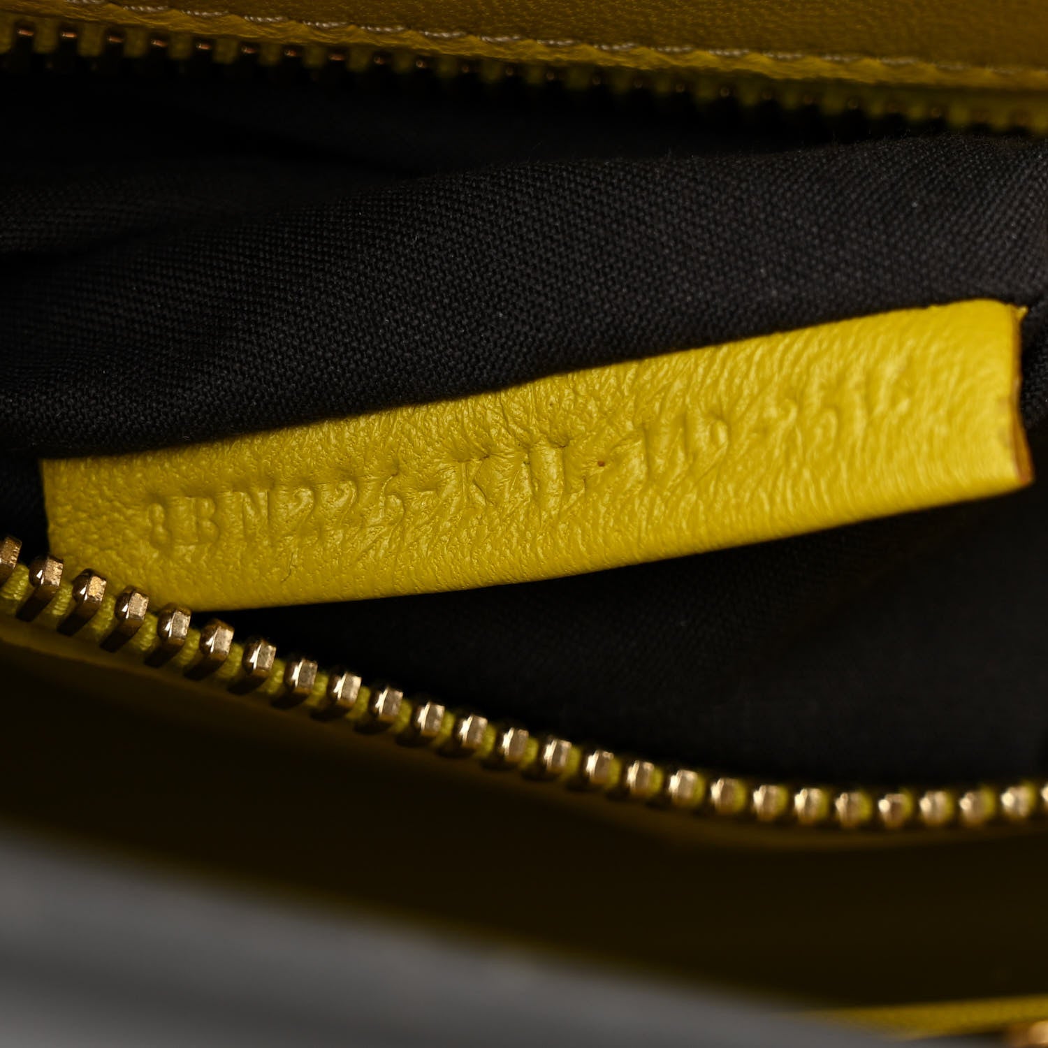 This is an authentic FENDI Vitello Morgan Shiny Nappa Medium Peekaboo Iconic Satchel in Piombo and Lime. This chic handbag is finely crafted of soft grey leather. This medium-sized bag features a looping top handle, an optional shoulder strap, and gold squared turn locks on either side. The interior is yellow leather with a zipper pocket.Follow this item for alerts. Fendi is a registered trademark of Fendi. FASHIONPHILE is not affiliated with Fendi.