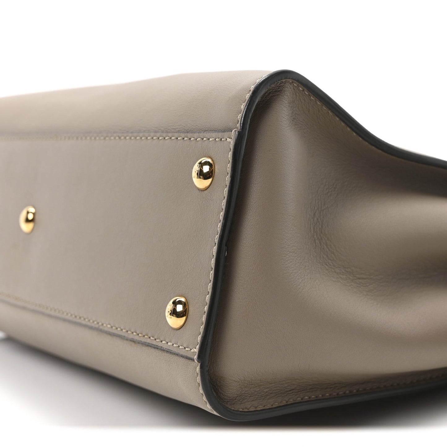 This is an authentic FENDI Vitello Seta Plexiglass Tortoise Medium Peekaboo Iconic Satchel in Tortora. This chic tote is finely crafted of soft taupe grey calfskin leather. This bag features a gold metal and tortoiseshell resin squared turn-lock on either side of the looping top handle that open to a microfiber interior with a zipper pocket. It can be carried as a shoulder bag with the optional strap or as a tote by the handle.Follow this item for alerts. Fendi is a registered trademark of Fendi. FASHIONPHILE is not affiliated with Fendi.