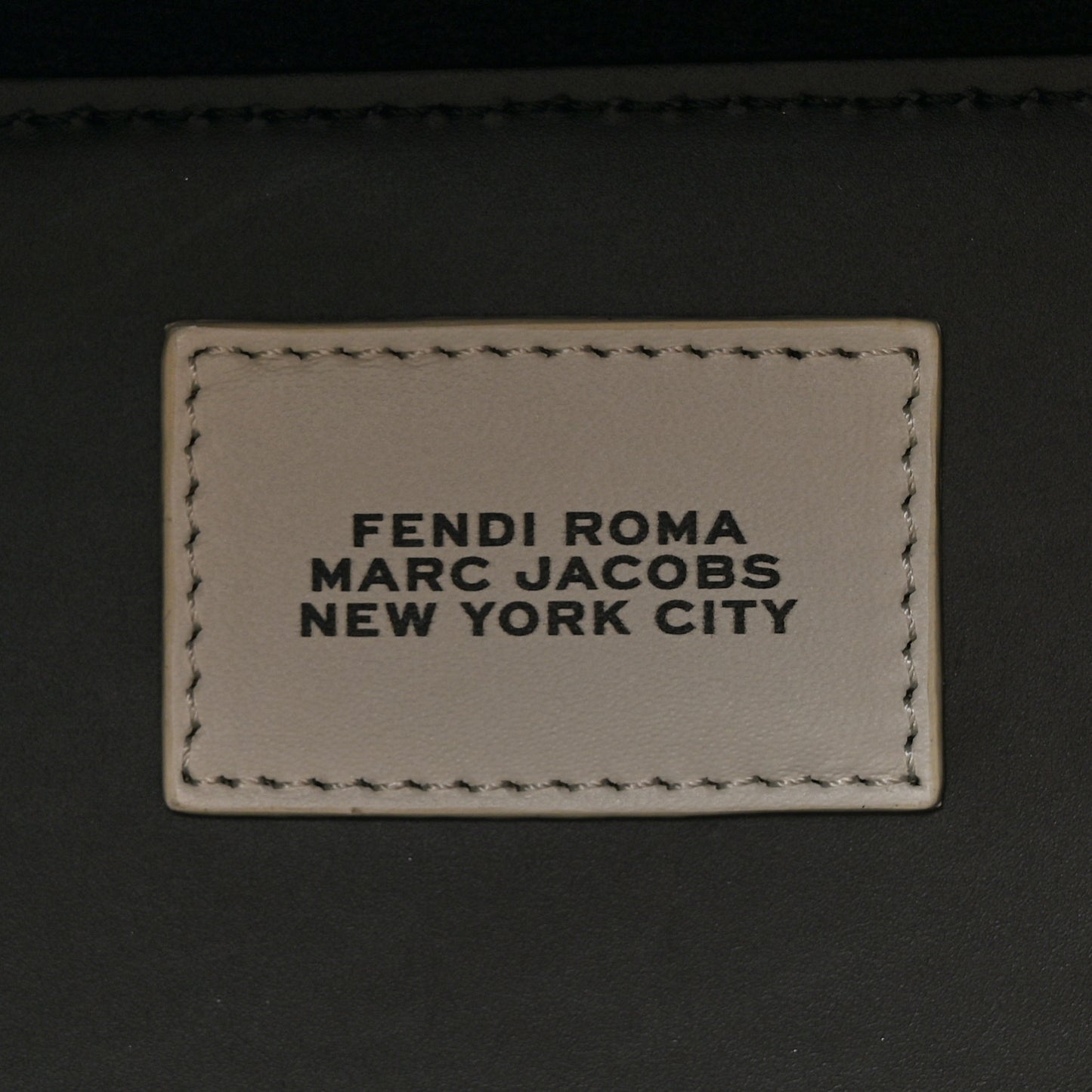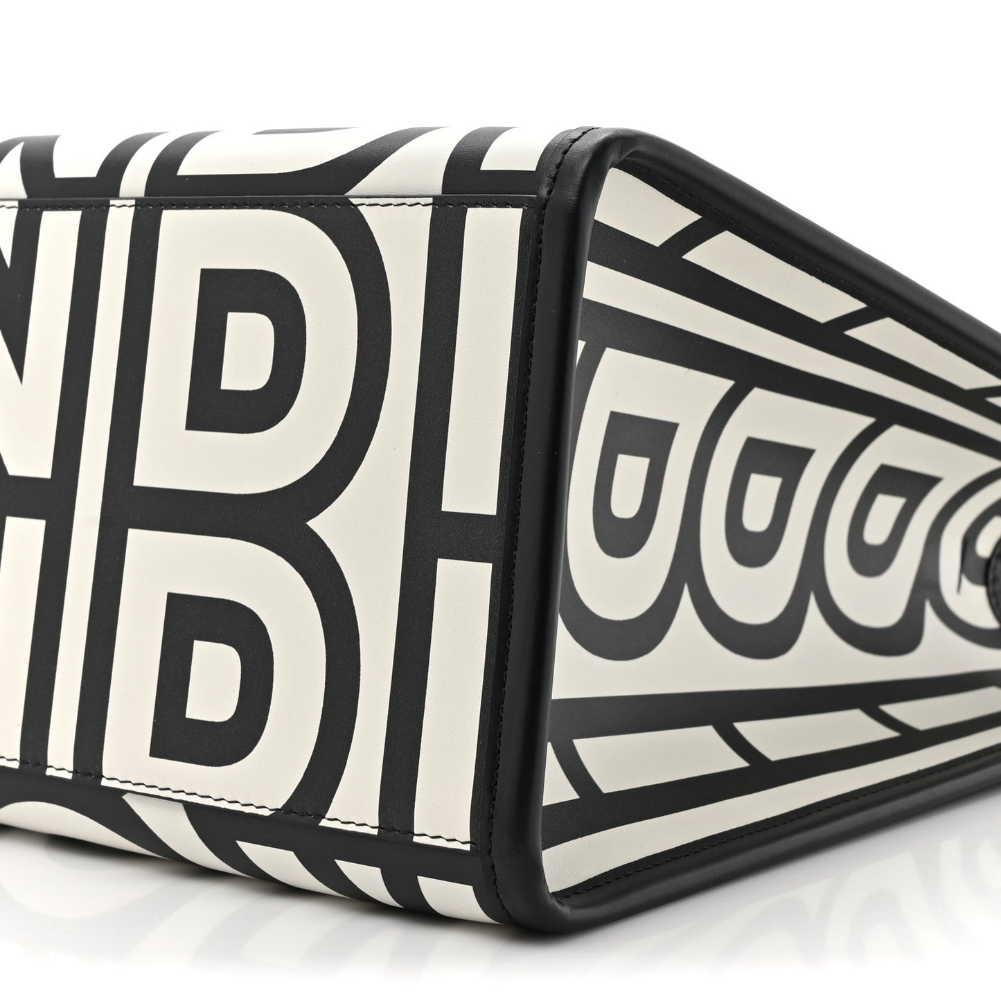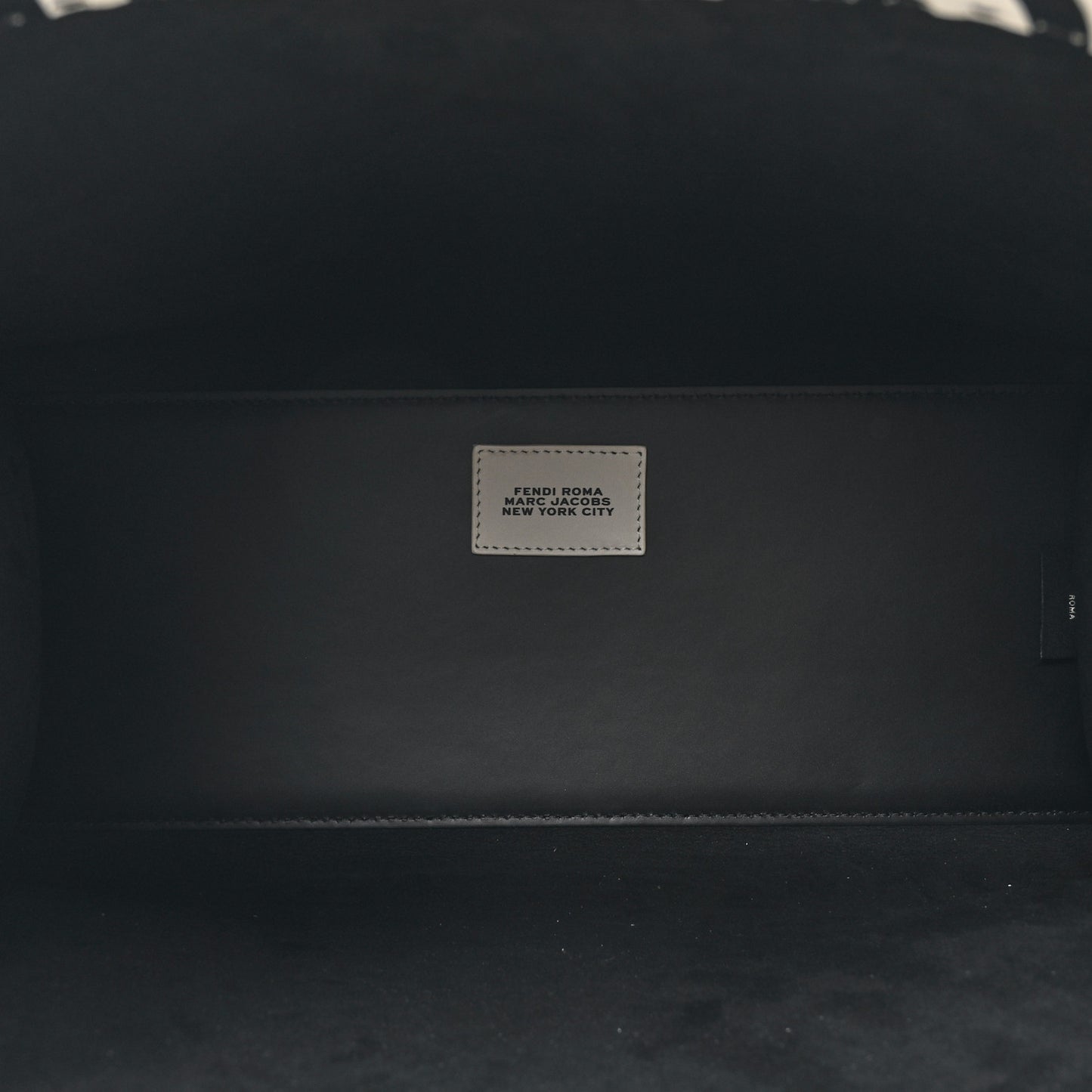 X MARC JACOBS Vitello King Logo Print Medium Fendi Sunshine Shopper Tote Black White