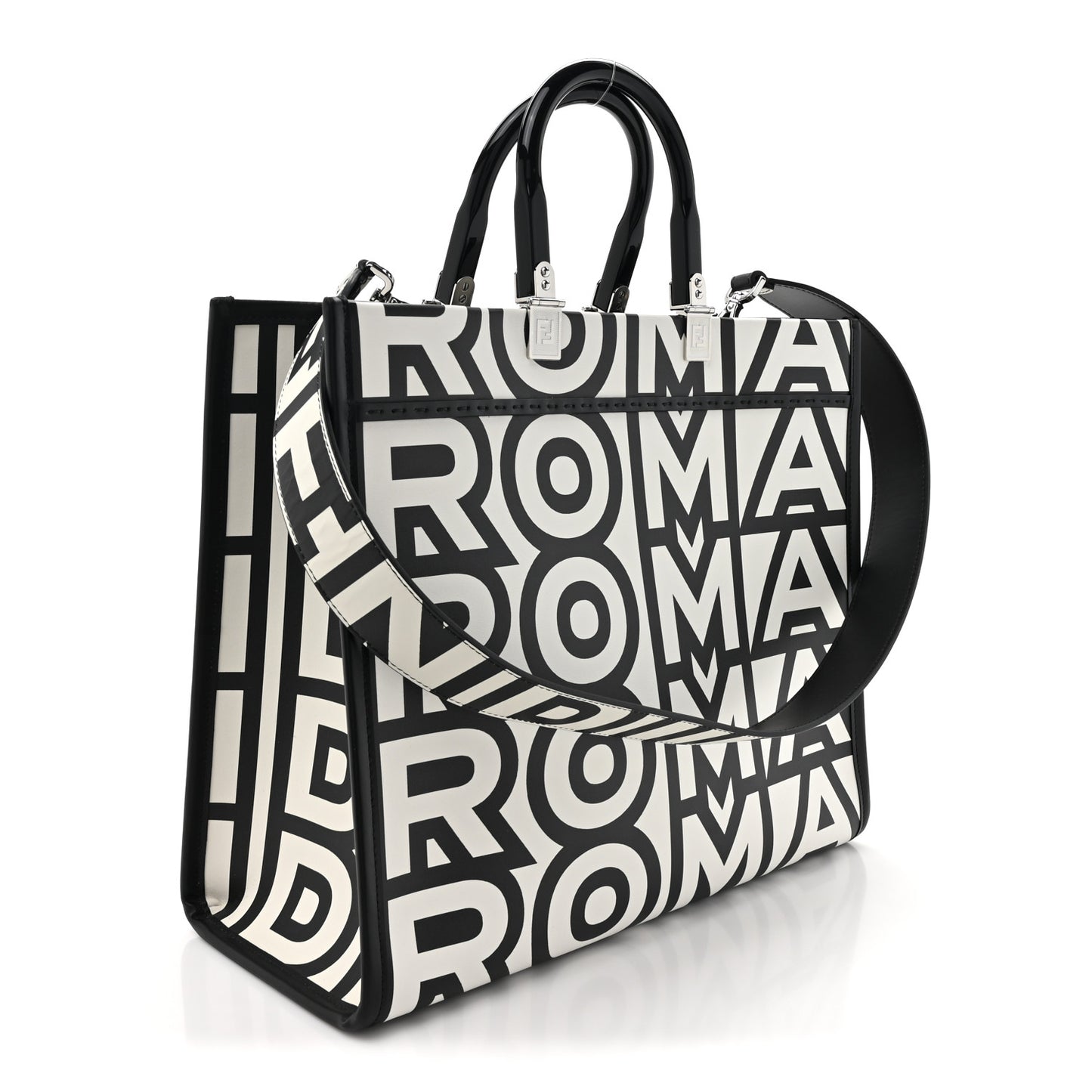 Fendi/ Bags/ Shoulder Bags /Fendi X MARC JACOBS Vitello King Logo Print Medium Fendi Sunshine Shopper Tote Black White
