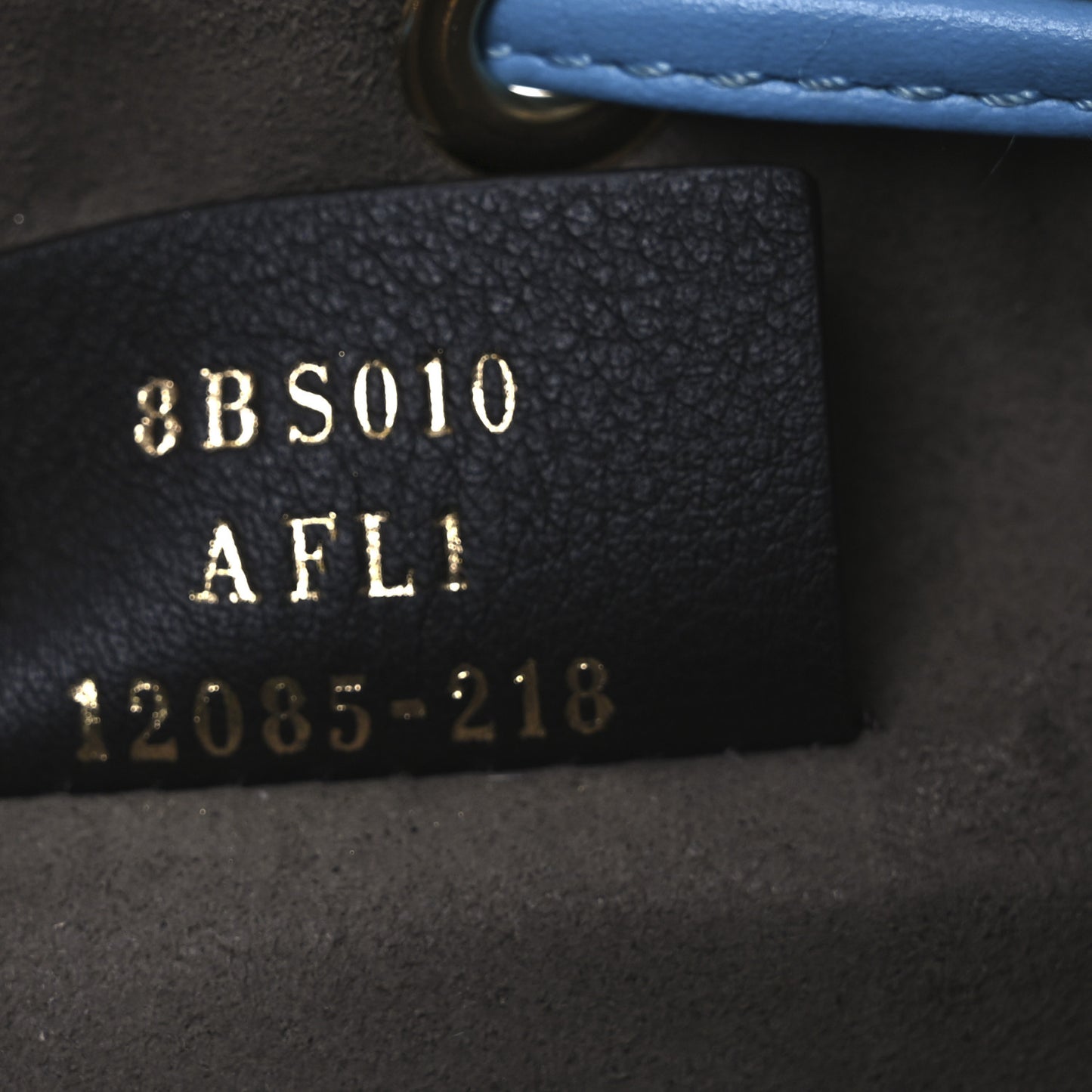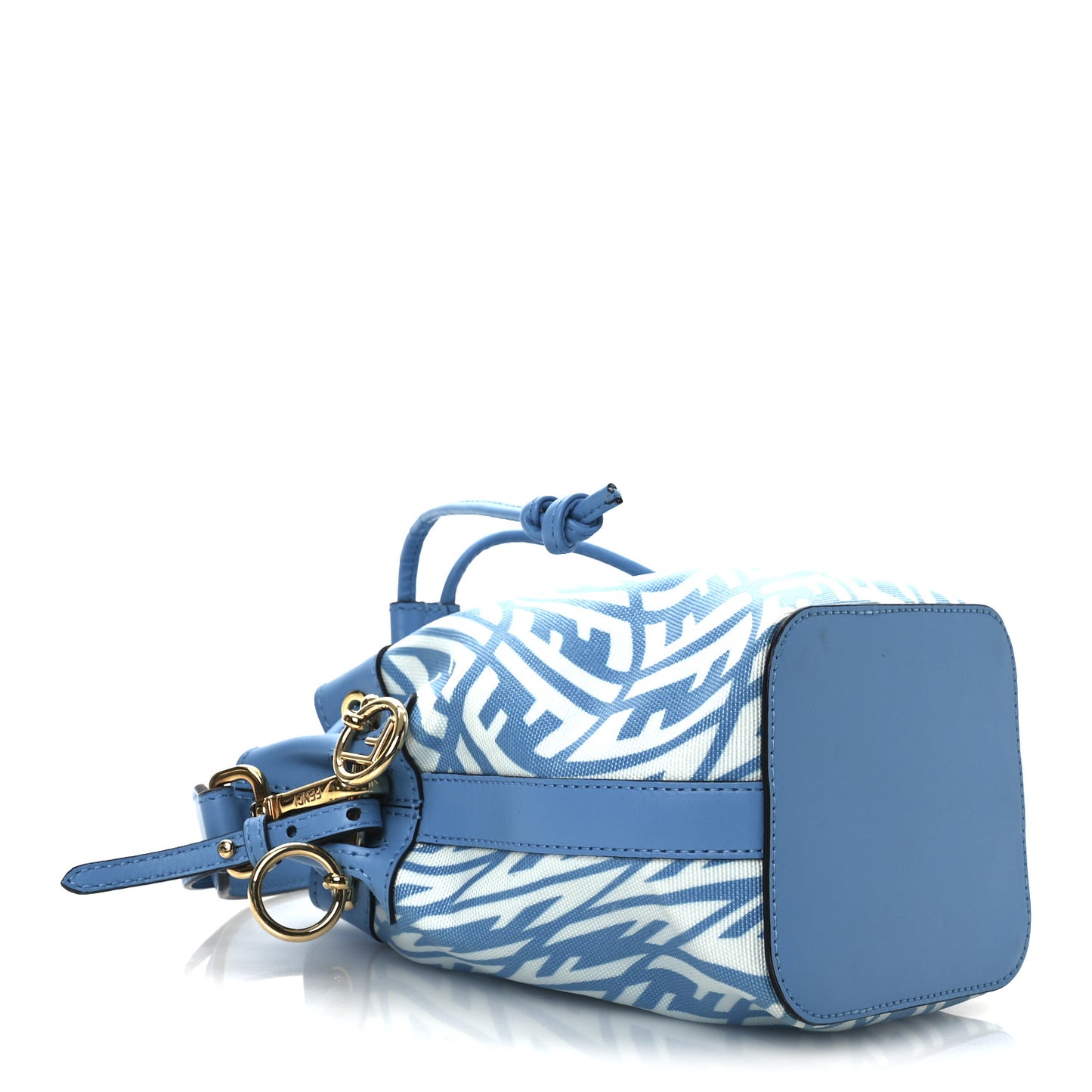 X SARAH COLEMAN Glazed Canvas Vitello King F is Fendi FF Vertigo Mini Mon Tresor Bucket Bag Cyber Blue White