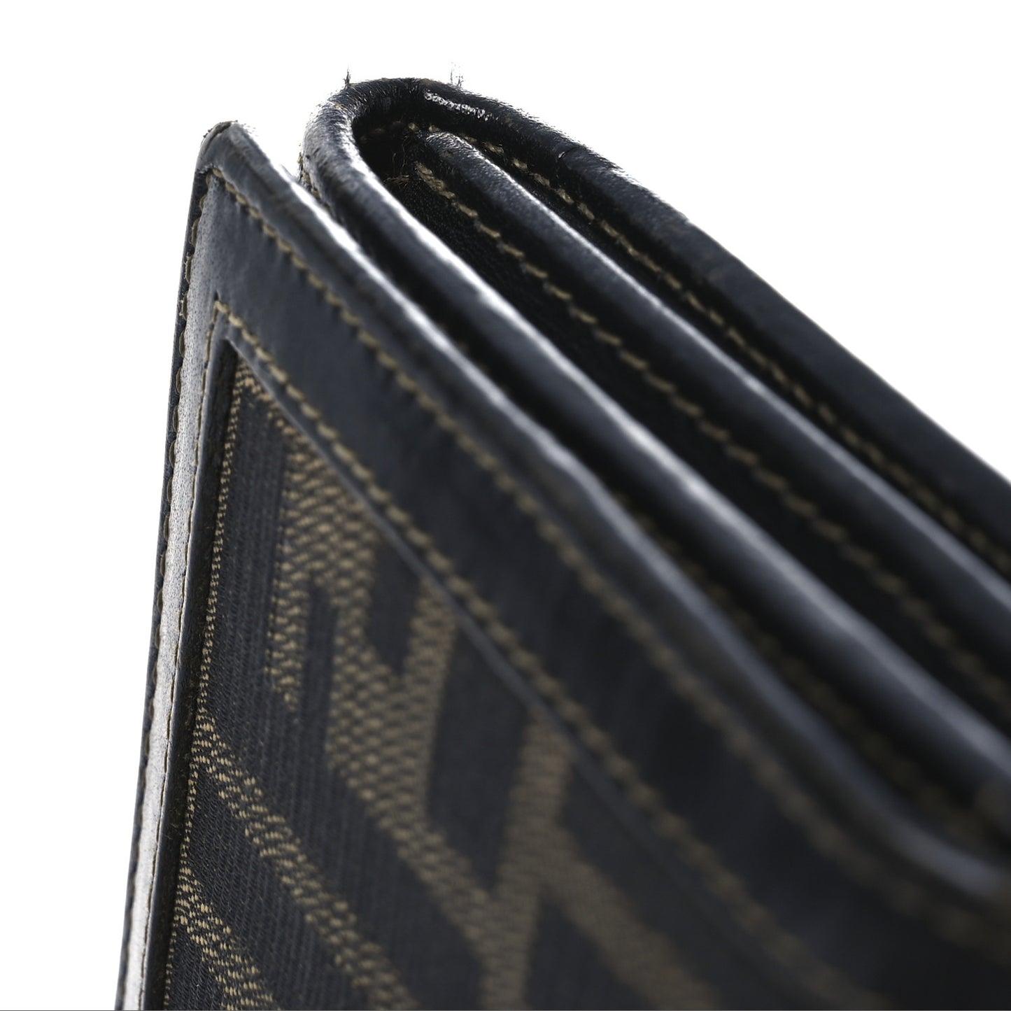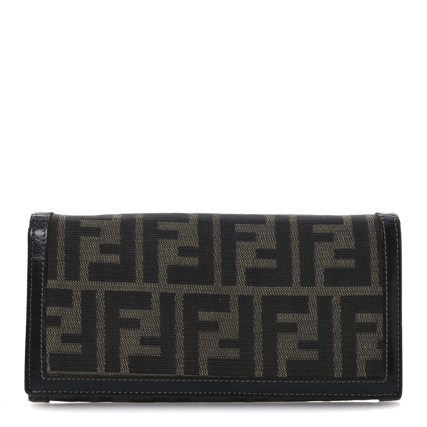 This is an authentic FENDI Zucca Continental Wallet in Tobacco. This wallet is crafted in Zucca Fendi FF monogram canvas in brown. It features brown leather trim and a snap button closure. The wallet opens to a brown leather interior with a coin pocket, card slots, and a bill compartment.Follow this item for alerts. Fendi is a registered trademark of Fendi. FASHIONPHILE is not affiliated with Fendi.