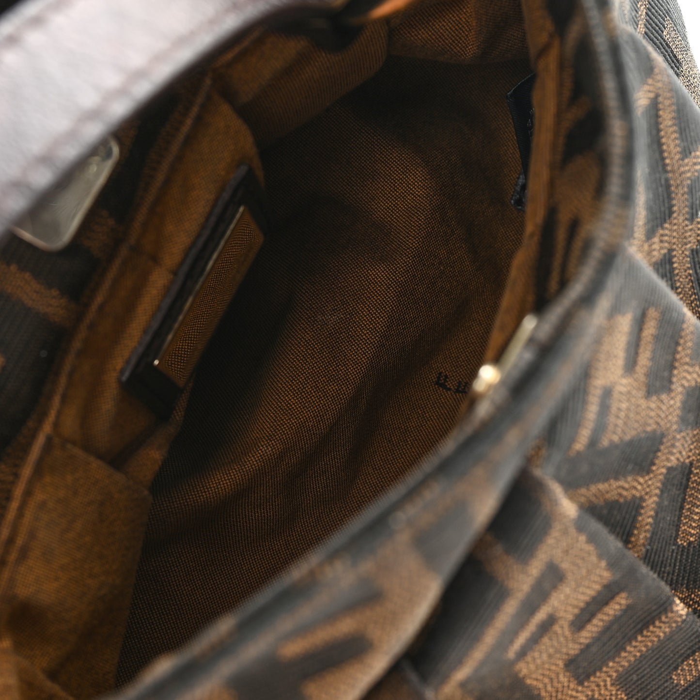 This is an authentic FENDI Zucca Mini Chef Hobo in Tobacco. This super chic mini tote is crafted of pleated Zucca Fendi monogram canvas. The bag features a looping leather strap with large polished brass rings. The top opens to a brown logo jacquard interior.Follow this item for alerts. Fendi is a registered trademark of Fendi. FASHIONPHILE is not affiliated with Fendi.