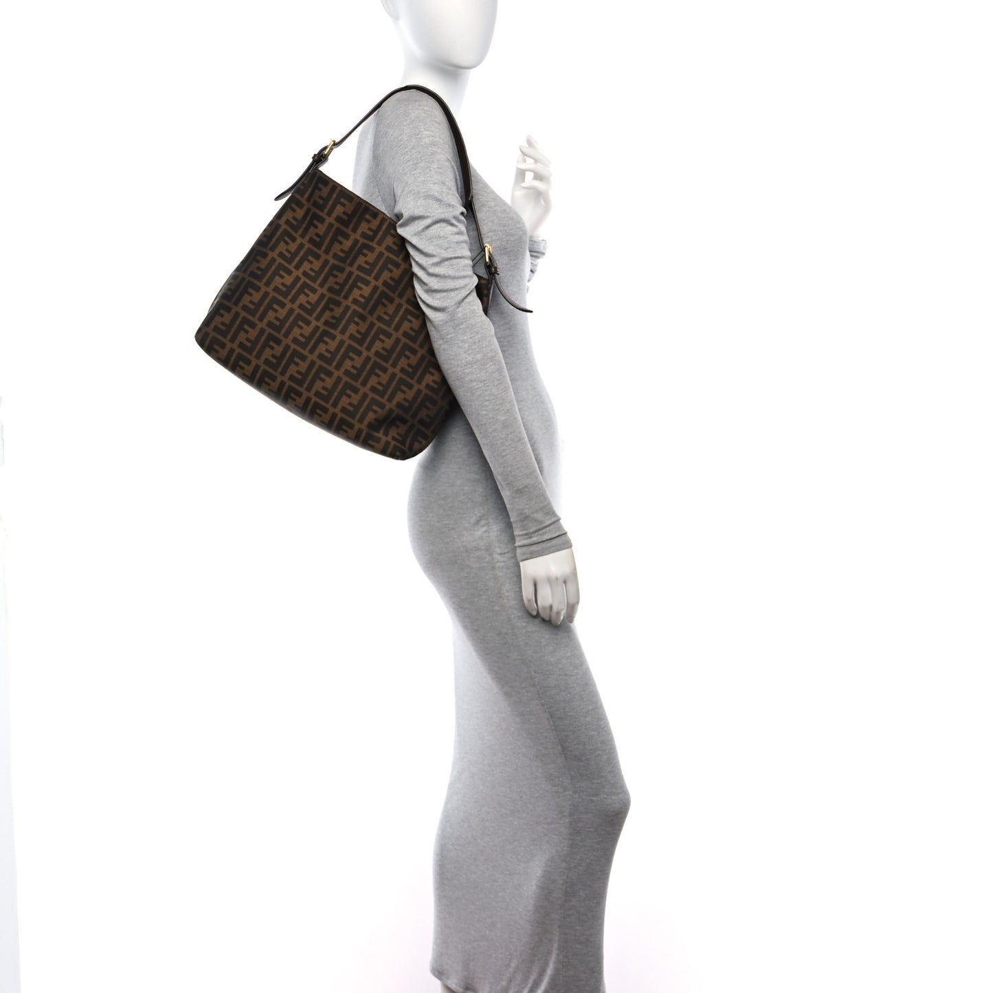 Fendi/ Bags/ Shoulder Bags /Fendi Zucca Vitello Artic Small Hobo Tobacco Castagna