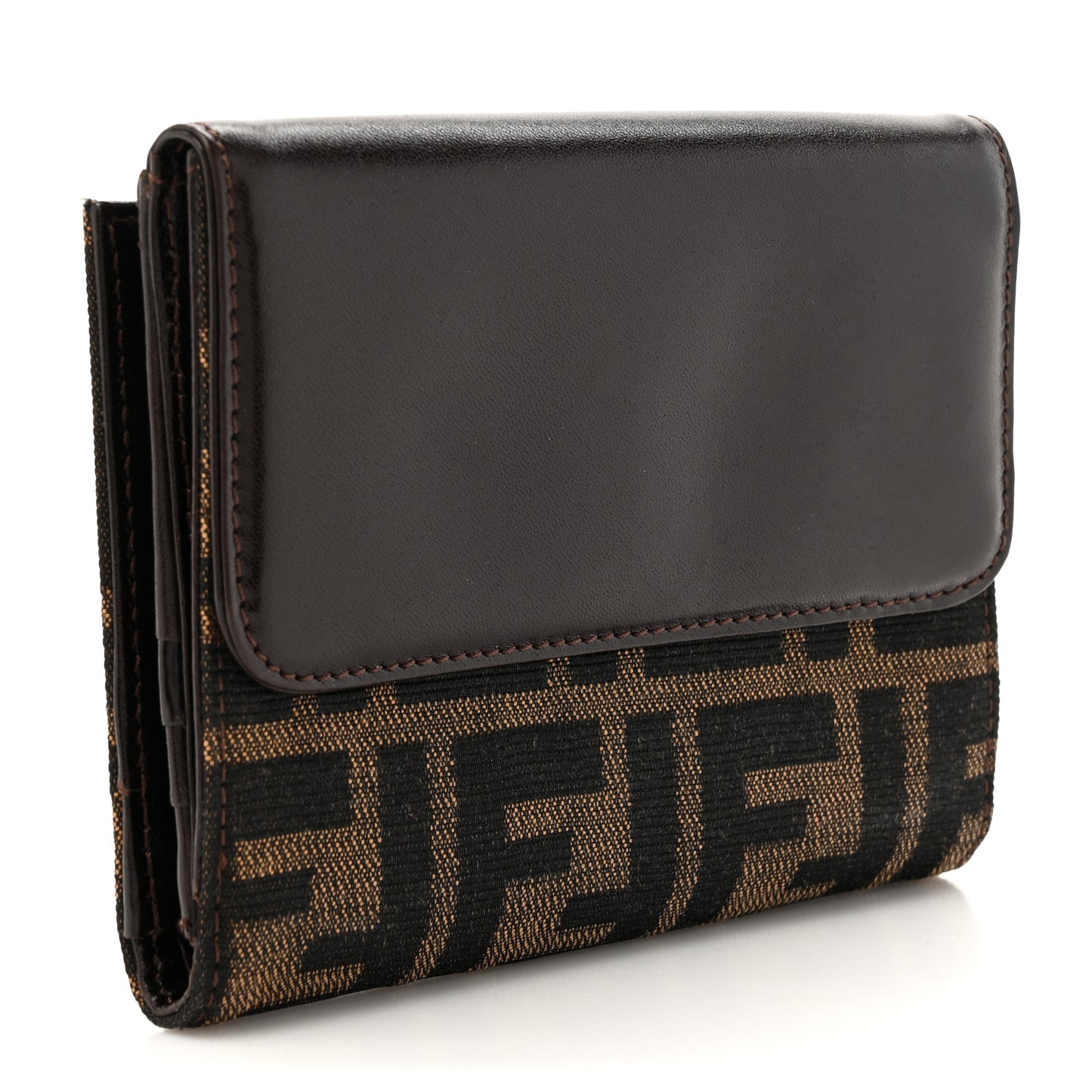 Fendi/ Accessories/ Wallets /Fendi Zucca Vitello Liberty FF Compact Wallet Tobacco Moro