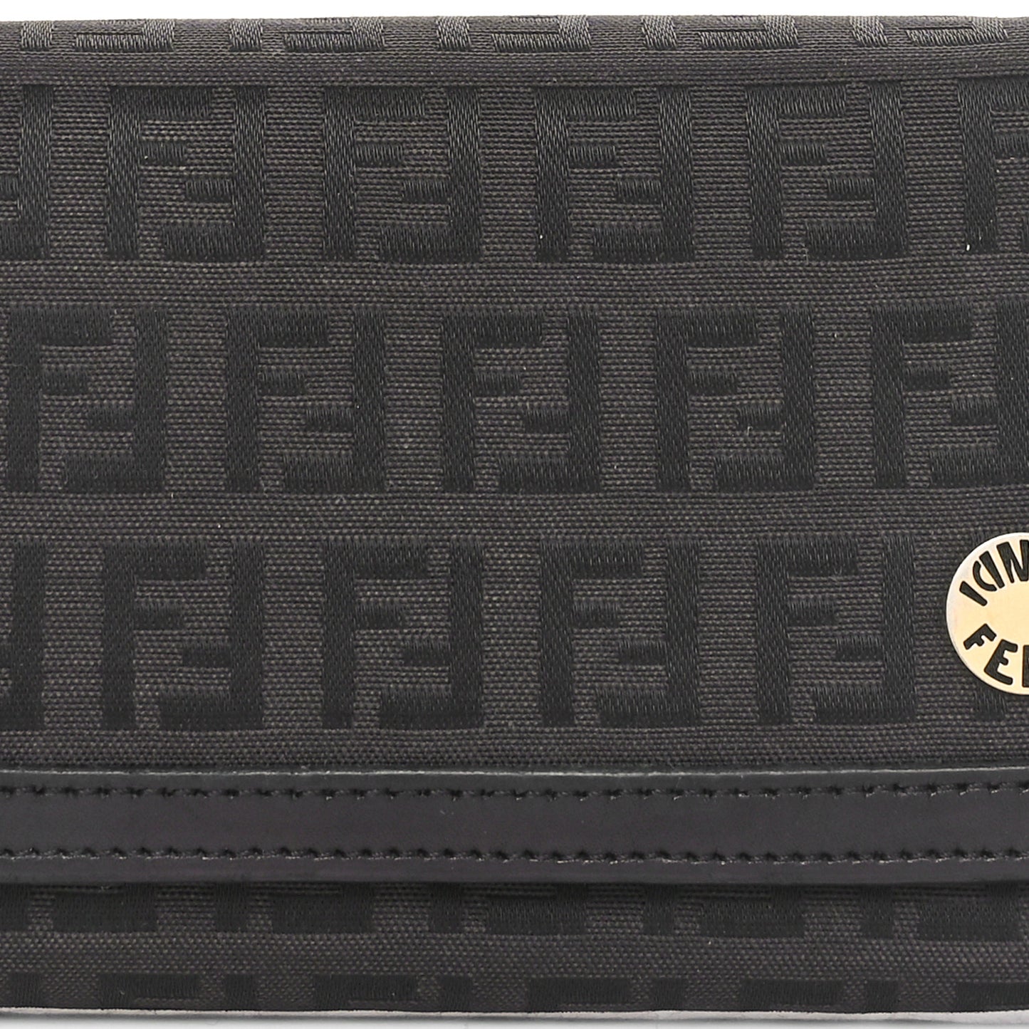 This is an authentic FENDI Zucchino Flap Wallet in Tobacco. This stylish clutch wallet is crafted of Fendi monogram canvas in brown with a brown leather trim. The flap opens to a leather and fabric interior with card slots, patch pockets and a zipper compartment.Follow this item for alerts. Fendi is a registered trademark of Fendi. FASHIONPHILE is not affiliated with Fendi.