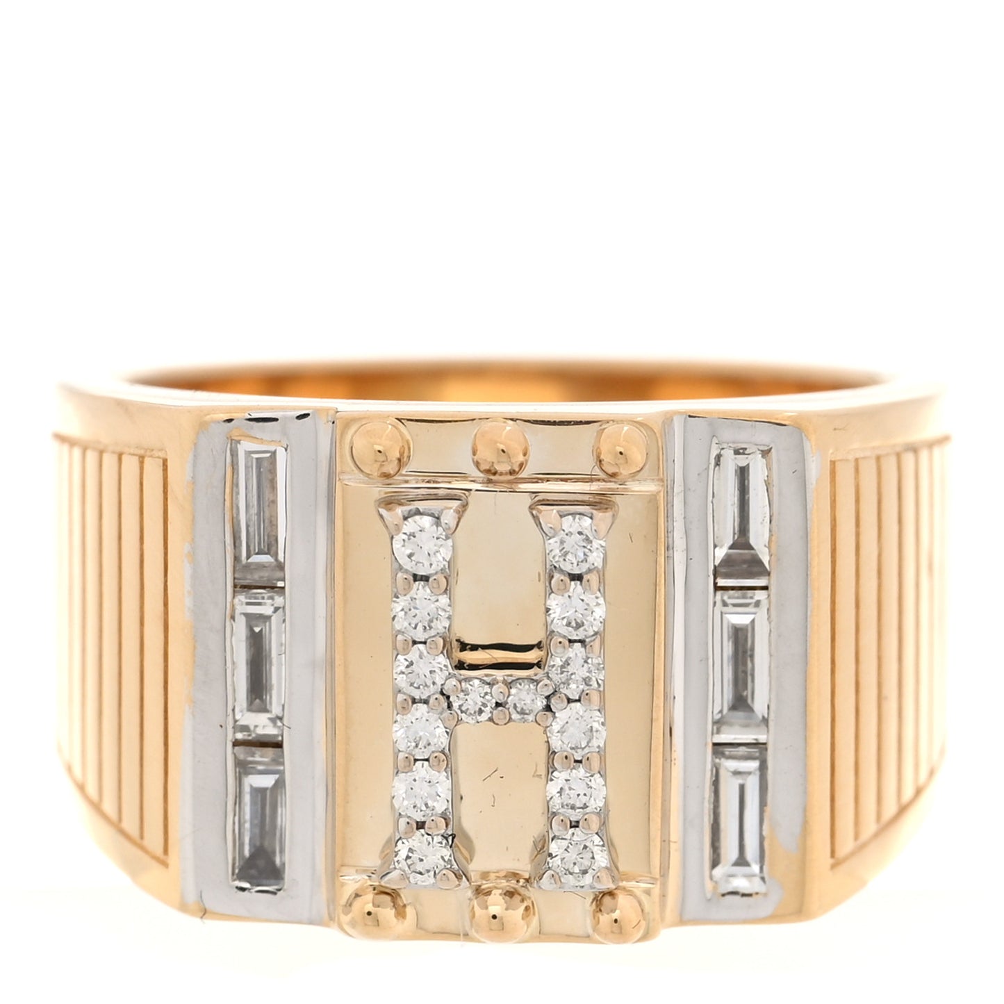 18K Yellow White Gold Diamond Lovestruck Pierced Initial H Ring 44 3