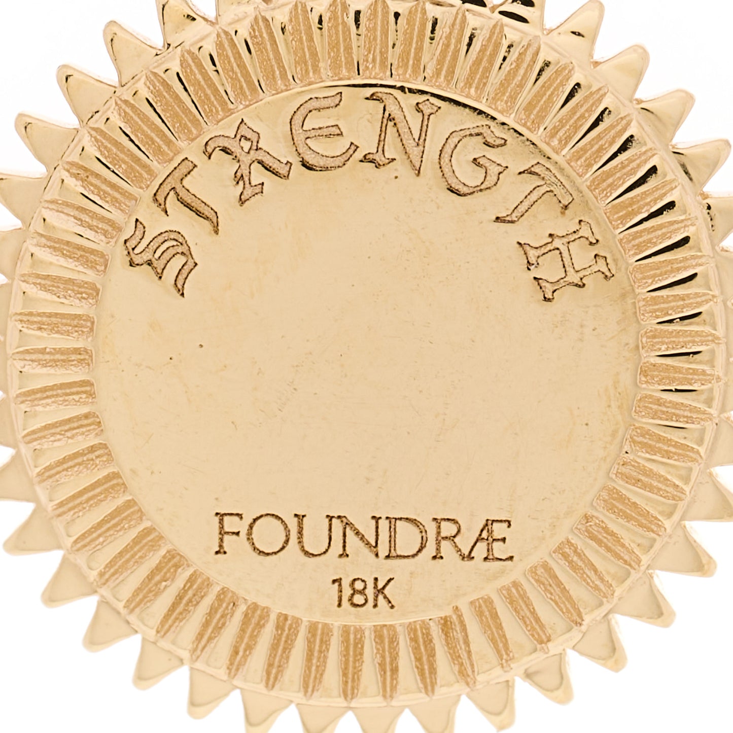 This is an authentic FOUNDRAE 18K Yellow White Gold Diamond Strength Miniature Medallion Earrings. These earrings are crafted of 18 karat yellow and white gold featuring a mini strength medallion motif accented with diamonds, approximately .14 total carat weight.Follow this item for alerts. Foundrae is a registered trademark of Foundrae. FASHIONPHILE is not affiliated with Foundrae.