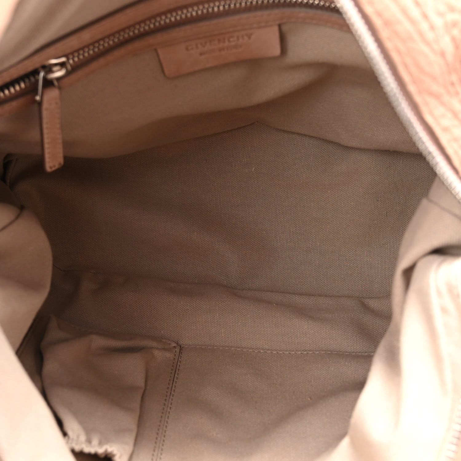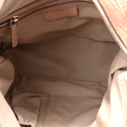 This is an authentic GIVENCHY Sheepskin Calfskin Small Nightingale in Beige. This sophisticated tote is finely crafted of pebbled sheepskin and smooth calfskin leather in beige. It features leather strap top handles and an optional leather shoulder strap with silver hardware. The top zipper opens to a beige fabric interior with zipper and patch pockets.