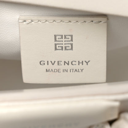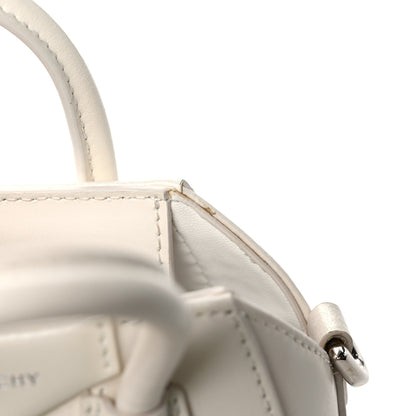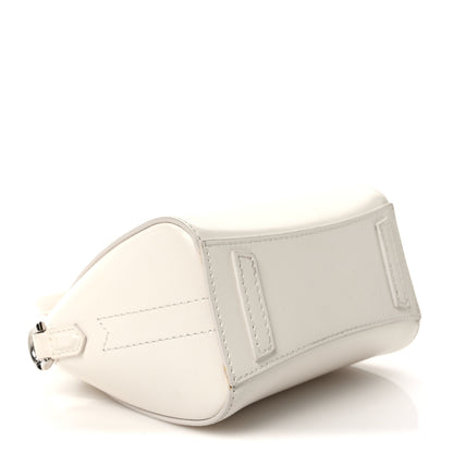 This is an authentic GIVENCHY Shiny Lord Calfskin Micro Antigona in Ivory. This structured mini handbag is crafted of polished smooth calfskin leather in off-white. The bag features sturdy rolled leather top handles with polished silver hardware, an optional shoulder strap, and signature extended sides. The top zipper opens to a white leather interior.Follow this item for alerts. Givenchy is a registered trademark of Givenchy. FASHIONPHILE is not affiliated with Givenchy.