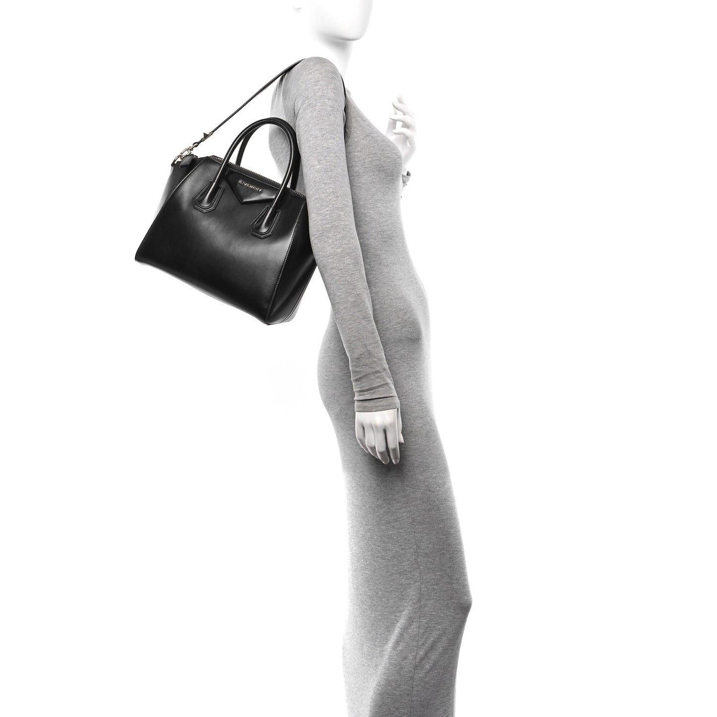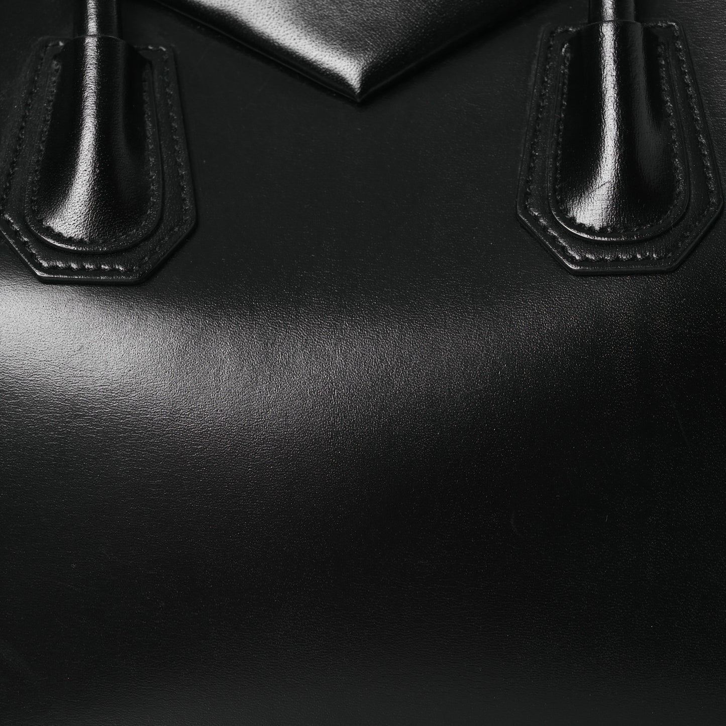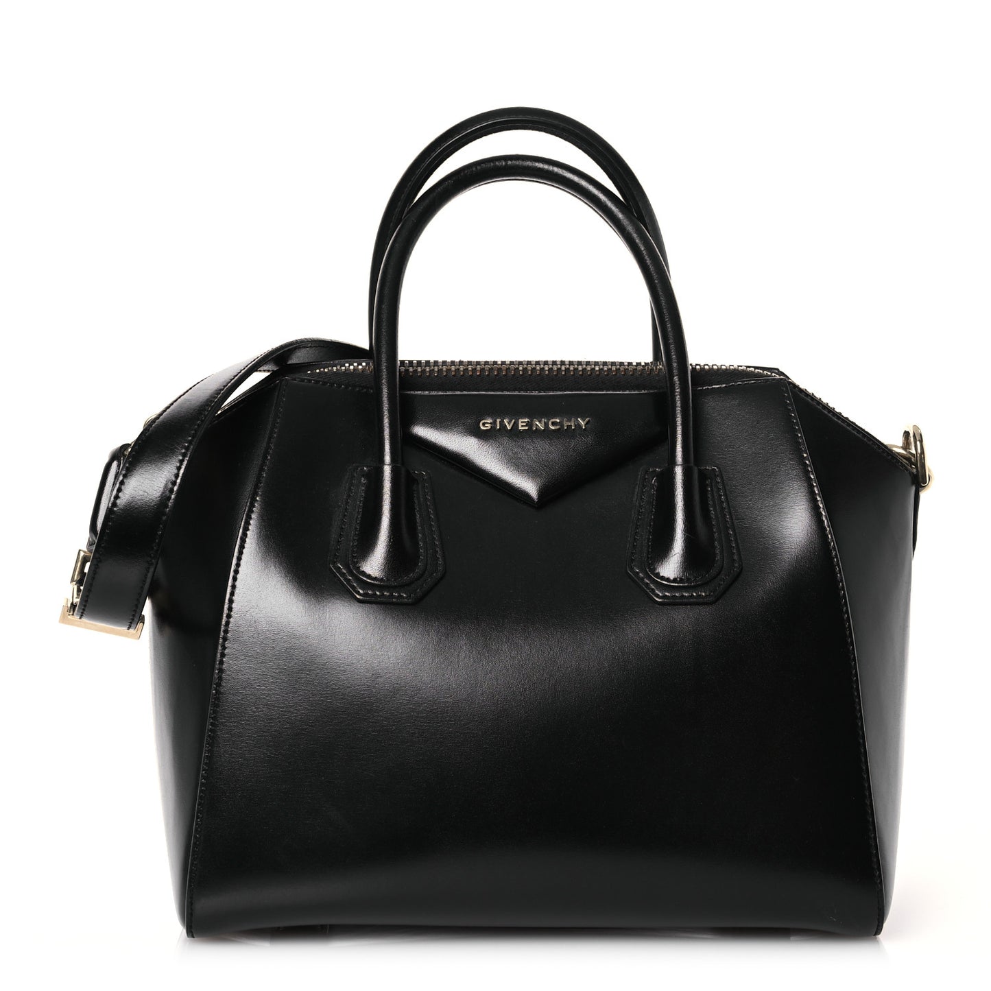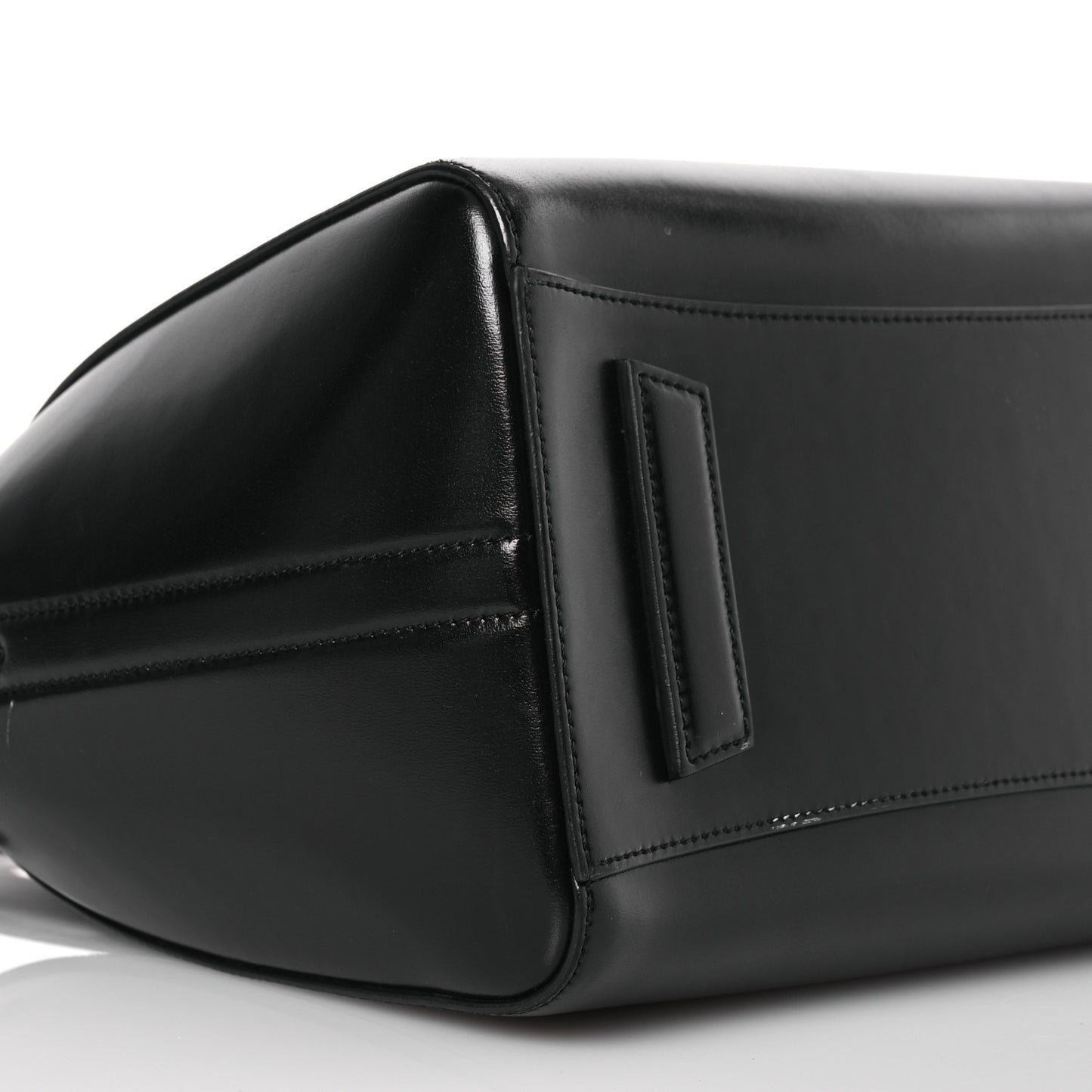 This is an authentic GIVENCHY Shiny Lord Calfskin Small Antigona in Black. This elegantly structured tote is crafted of luxuriously polished smooth calfskin leather in black. This shoulder bag features sturdy rolled leather top handles with polished silver hardware, a shoulder strap, and signature extended sides. The top opens with a silver zipper to a black fabric interior with zipper and patch pockets.Follow this item for alerts. Givenchy is a registered trademark of Givenchy. FASHIONPHILE is not affiliated with Givenchy.