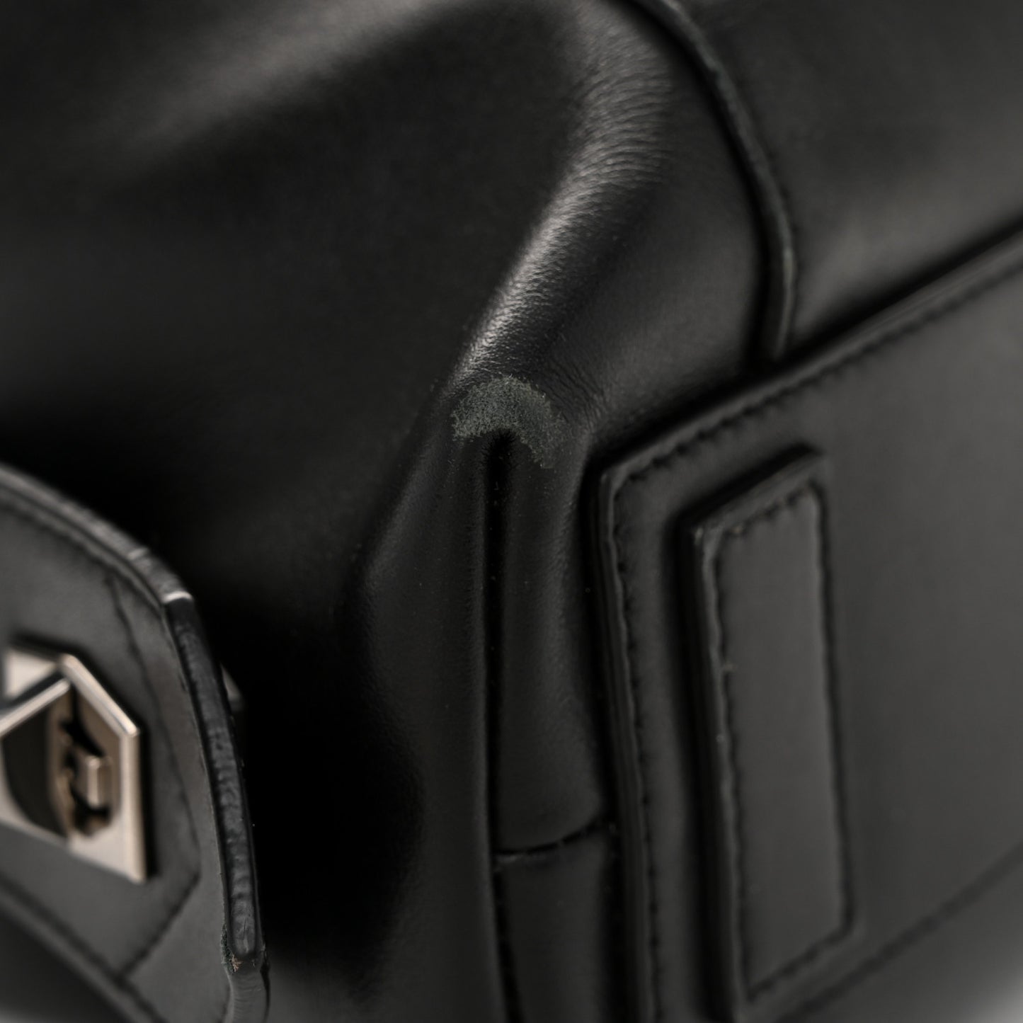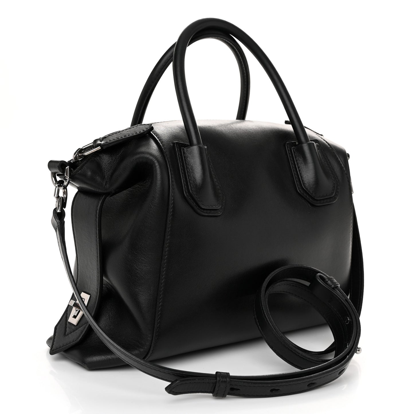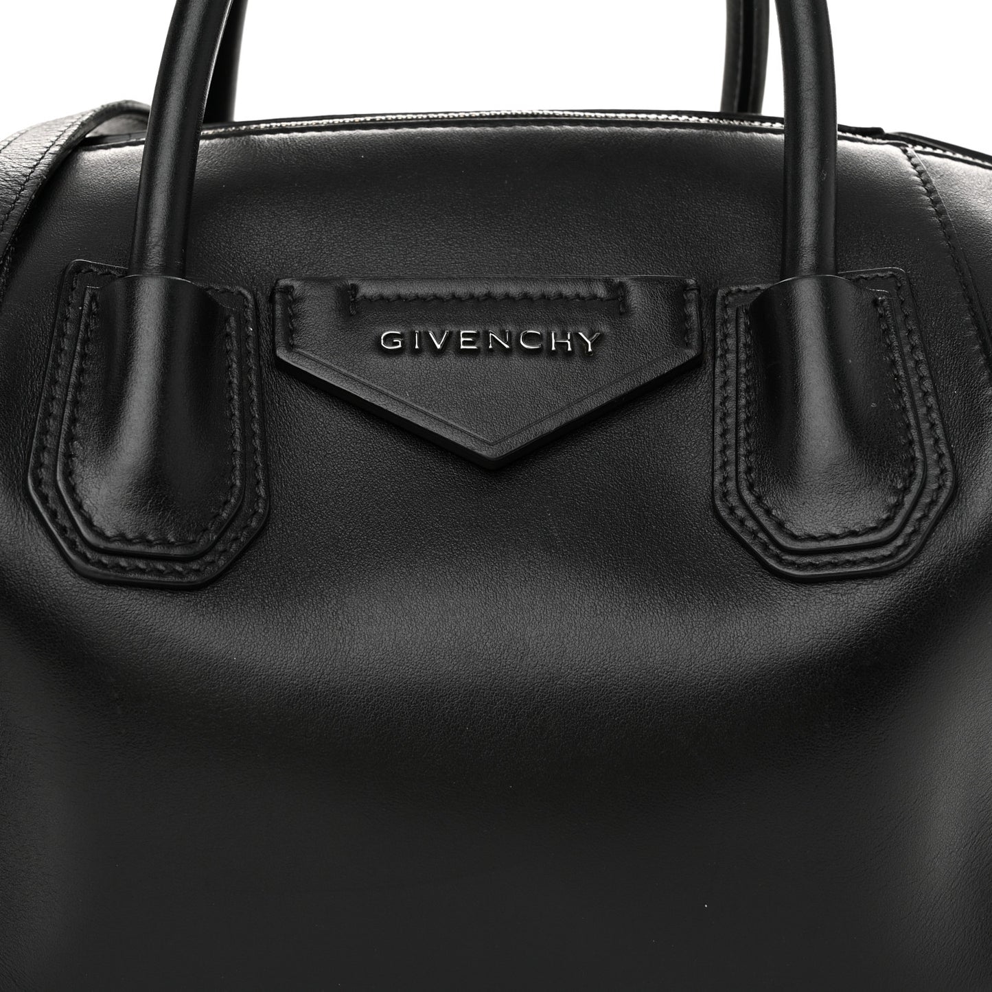 This is an authentic GIVENCHY Smooth Calfskin Small Soft Antigona in Black. This elegant shoulder bag is composed of smooth calfskin leather in black. The handbag features rolled leather top handles and an optional shoulder strap with polished silver hardware. The top zipper opens to a beige fabric interior with a leather pocket.Follow this item for alerts. Givenchy is a registered trademark of Givenchy. FASHIONPHILE is not affiliated with Givenchy.