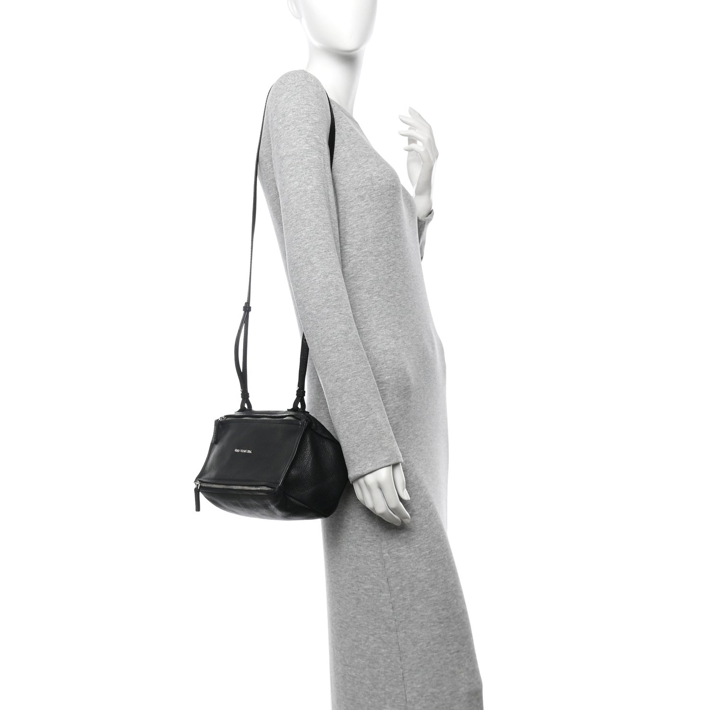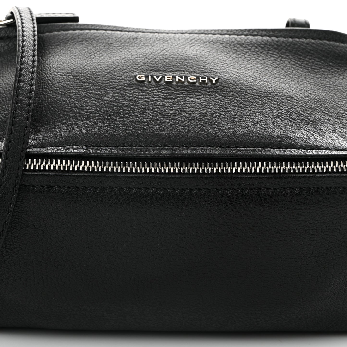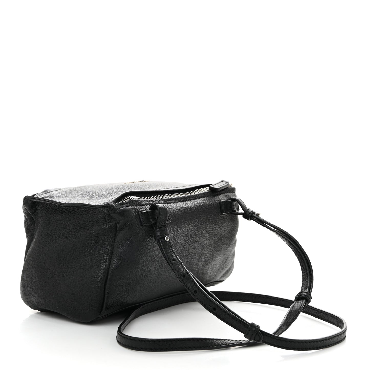 This is an authentic GIVENCHY Sugar Goatskin Mini Pandora in Black. This chic messenger bag is finely crafted of sugar grained goatskin leather in black. The bag features two external front zipper pockets, a long leather adjustable shoulder strap, and silver hardware. The zippers open to a black fabric interior with a zipper pocket.Follow this item for alerts. Givenchy is a registered trademark of Givenchy. FASHIONPHILE is not affiliated with Givenchy.