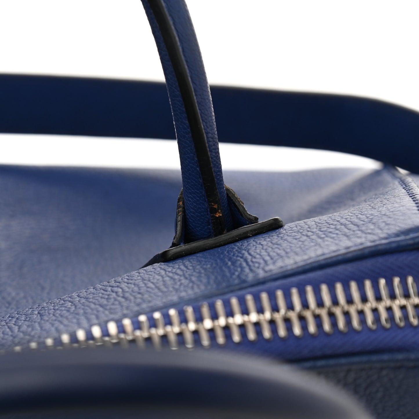 Handle: Smoothing of leather, edge wear, scuffs, darkening, marks, cracks, frayed stitch(es), splitting