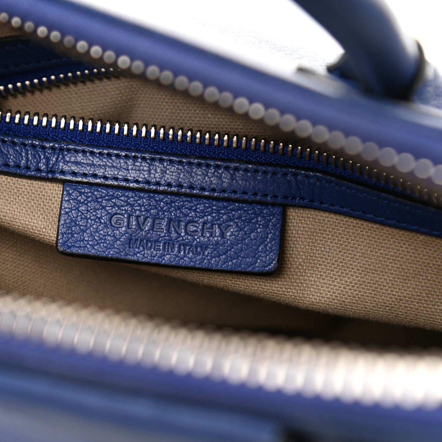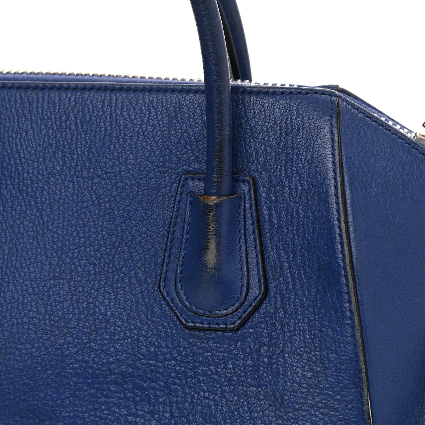 This is an authentic GIVENCHY Sugar Goatskin Small Antigona in Bright Blue. This elegant model is composed of luxuriously grained goatskin leather in blue. The bag features rolled leather top handles and a leather shoulder strap with polished silver hardware. The top zipper opens to a beige fabric interior with zipper and patch pockets.Follow this item for alerts. Givenchy is a registered trademark of Givenchy. FASHIONPHILE is not affiliated with Givenchy.