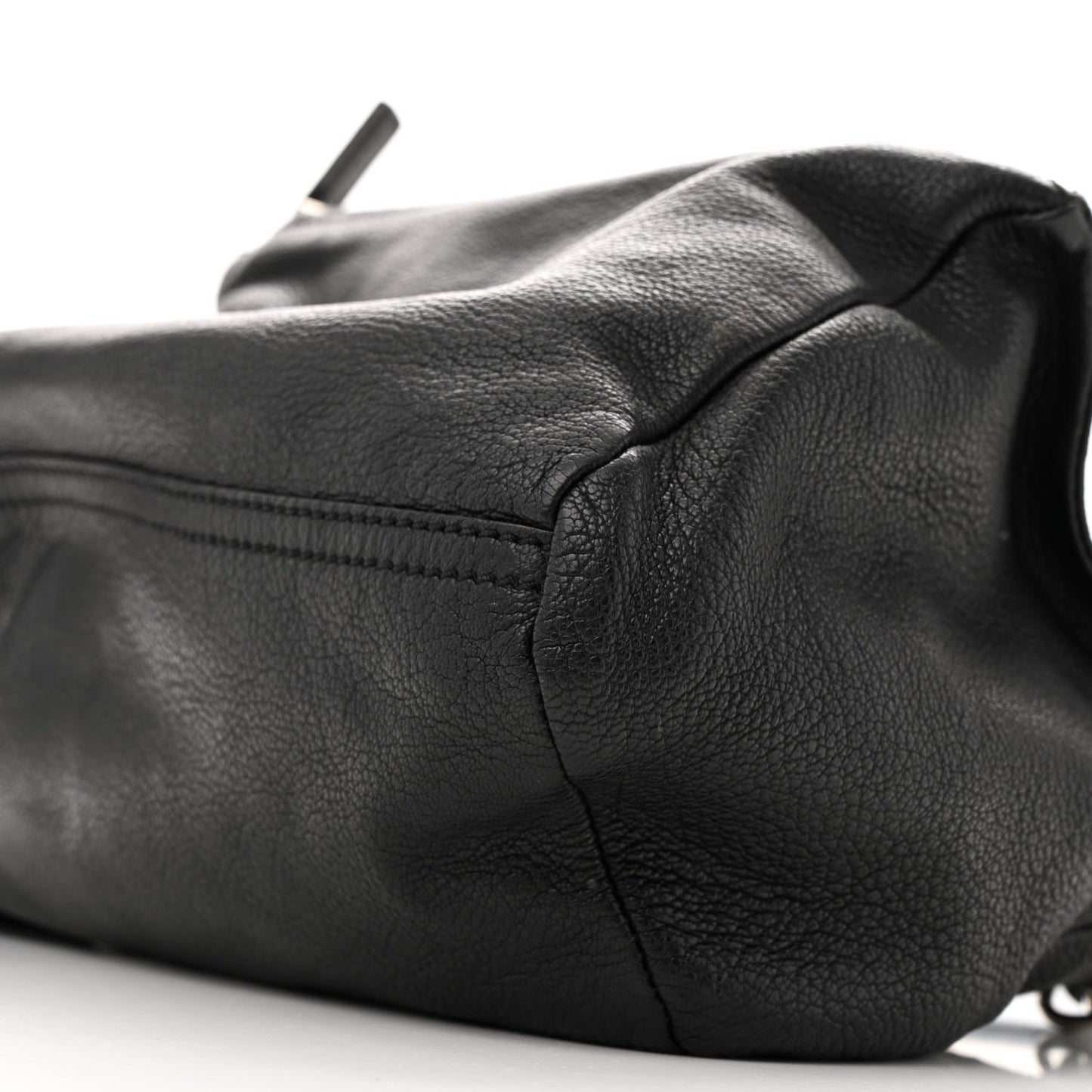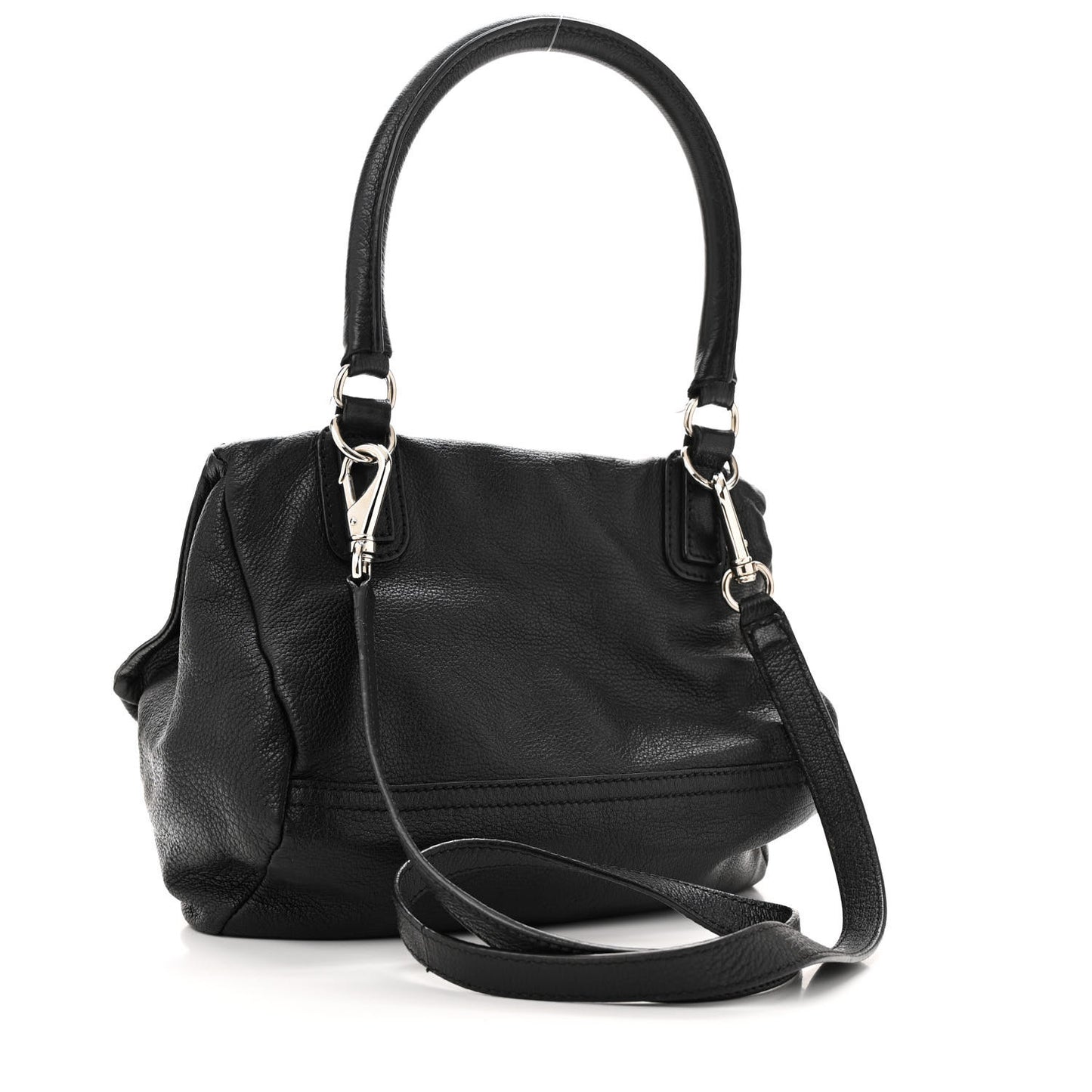 This is an authentic GIVENCHY Sugar Goatskin Small Pandora in Black. This chic messenger bag is finely crafted of sugar grained goatskin leather in black. The bag features two external front zipper pockets, a leather shoulder strap, and silver hardware. The zippers open to a black fabric interior with a zipper pocket.Follow this item for alerts. Givenchy is a registered trademark of Givenchy. FASHIONPHILE is not affiliated with Givenchy.