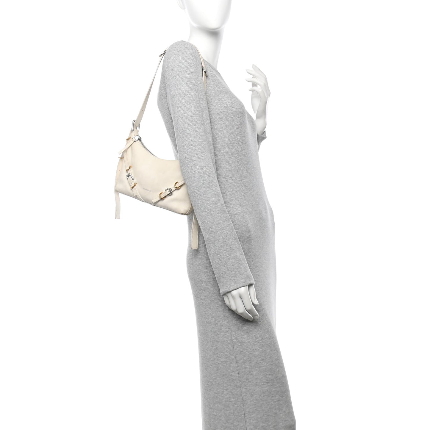 This is an authentic GIVENCHY Tumbled Calfskin Mini Voyou Boyfriend Party Bag in White. This sleek bag is crafted of textured calfskin in white. The bag features an adjustable leather shoulder strap with gold and silver hardware. The top zipper opens to a beige fabric interior.Follow this item for alerts. Givenchy is a registered trademark of Givenchy. FASHIONPHILE is not affiliated with Givenchy.