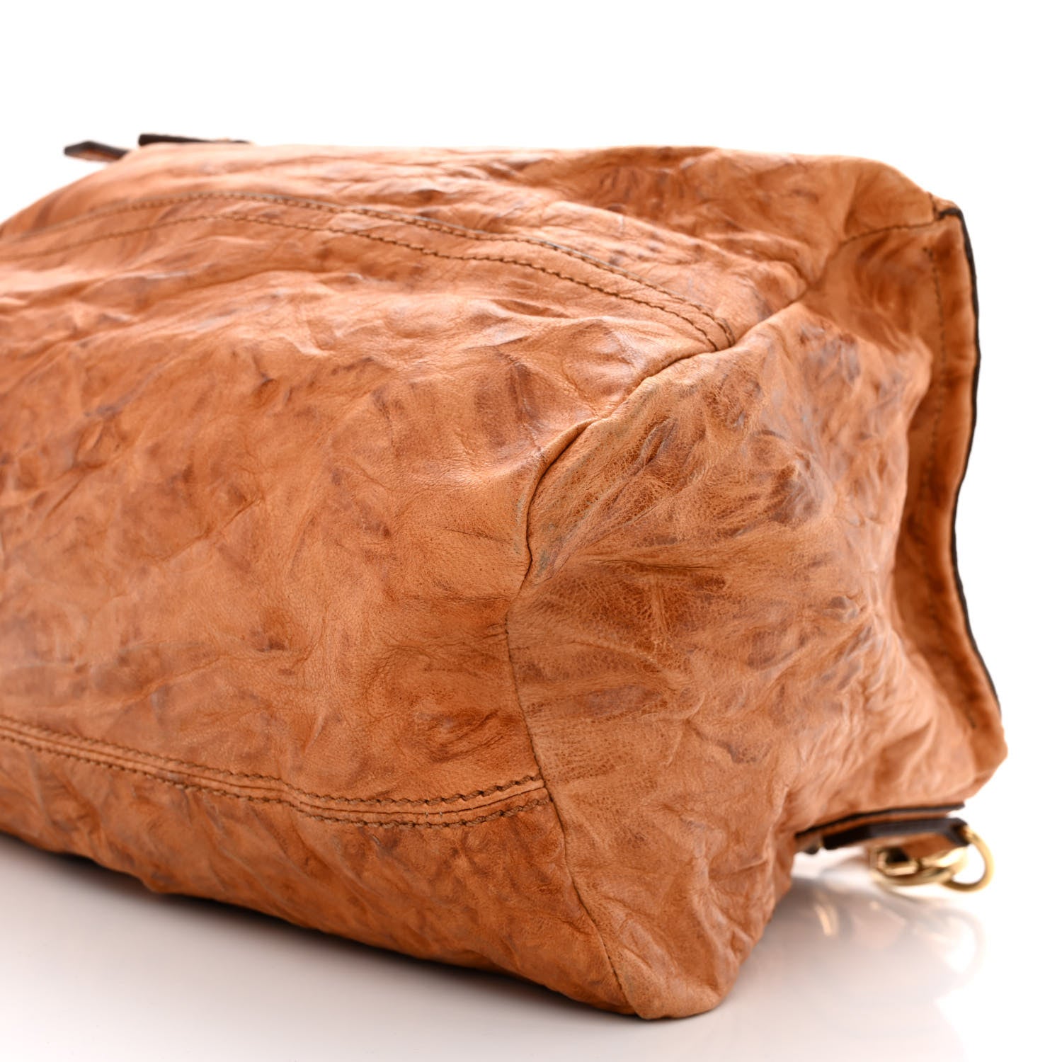 This is an authentic GIVENCHY Tumbled Sheepskin Medium Pandora in Cigare. This unique messenger bag is finely crafted of soft distressed sheepskin leather in brown. This bag features a top handle and an optional leather shoulder strap with gold hardware. The two top zippers open to a spacious beige fabric interior with patch pockets.Follow this item for alerts. Givenchy is a registered trademark of Givenchy. FASHIONPHILE is not affiliated with Givenchy.