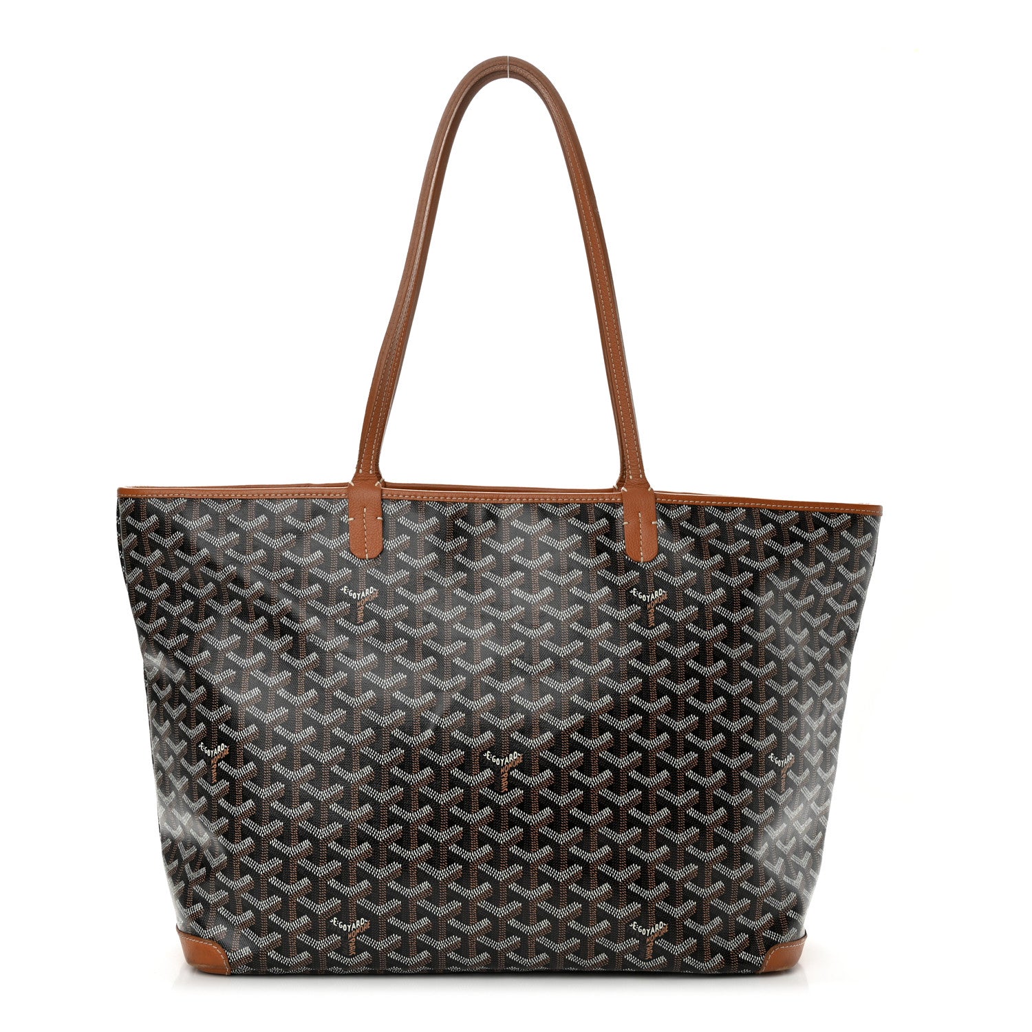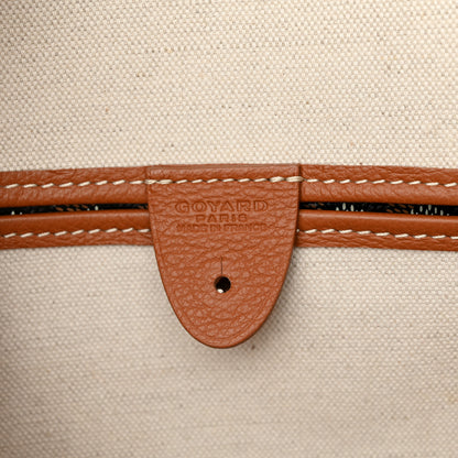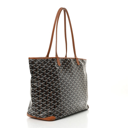 This is an authentic GOYARD Goyardine Artois MM in Black and Gold. This is a tote crafted of Goyardine coated canvas with its iconic chevron pattern. This tote features brown leather trim, leather strap handles, and leather corner patches. The silver top zipper opens to a spacious ivory canvas interior with a patch pocket lined with matching goyardine coated canvas.Follow this item for alerts. Goyard is a registered trademark of Goyard. FASHIONPHILE is not affiliated with Goyard.