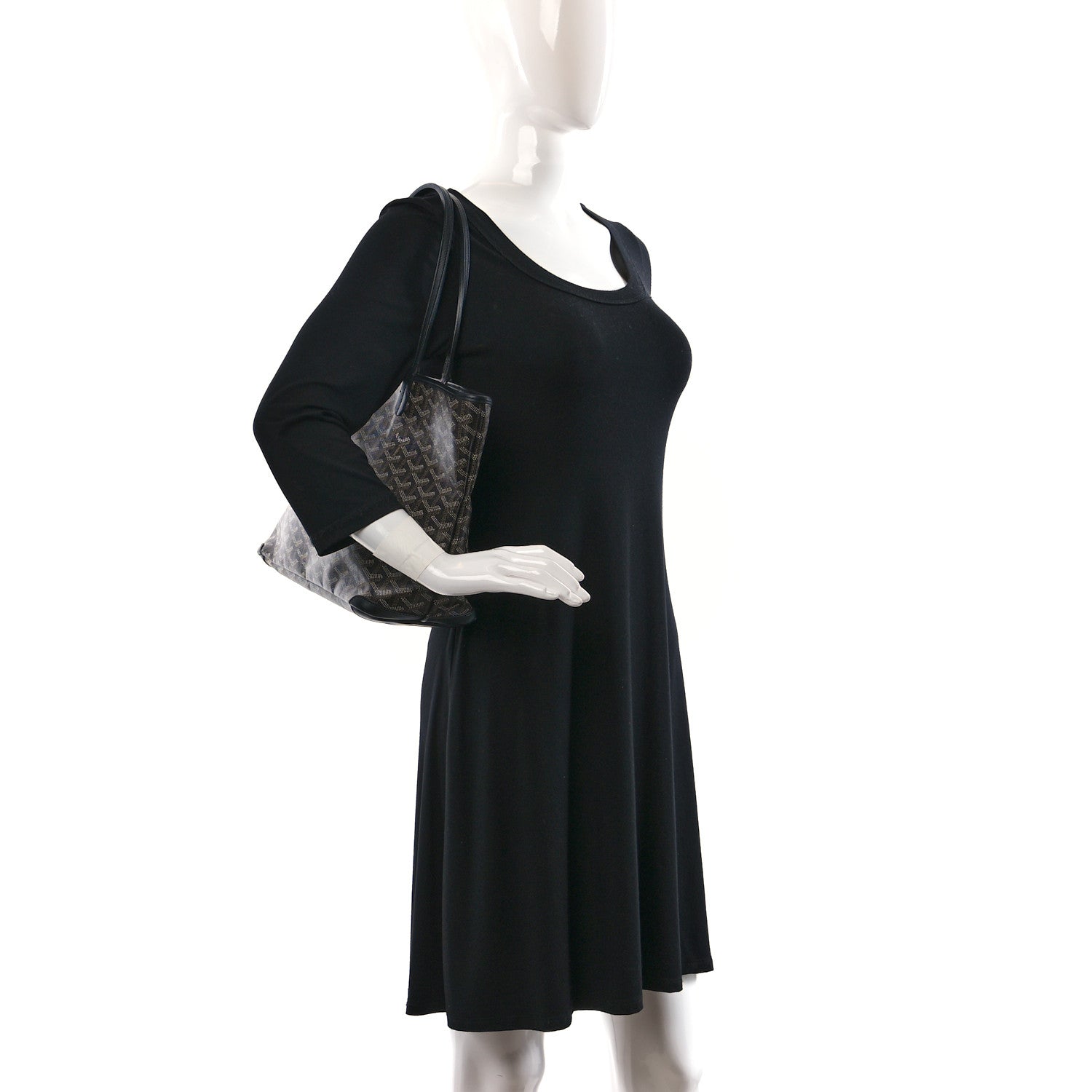 This is an authentic GOYARD Goyardine Artois PM in Black. This is a tote crafted of Goyardine coated canvas with its iconic chevron pattern. This tote features black leather trim, leather strap handles, and leather corner patches. The silver top zipper opens to a spacious ivory canvas interior with a hanging patch pocket lined with matching goyardine coated canvas.Follow this item for alerts. Goyard is a registered trademark of Goyard. FASHIONPHILE is not affiliated with Goyard.