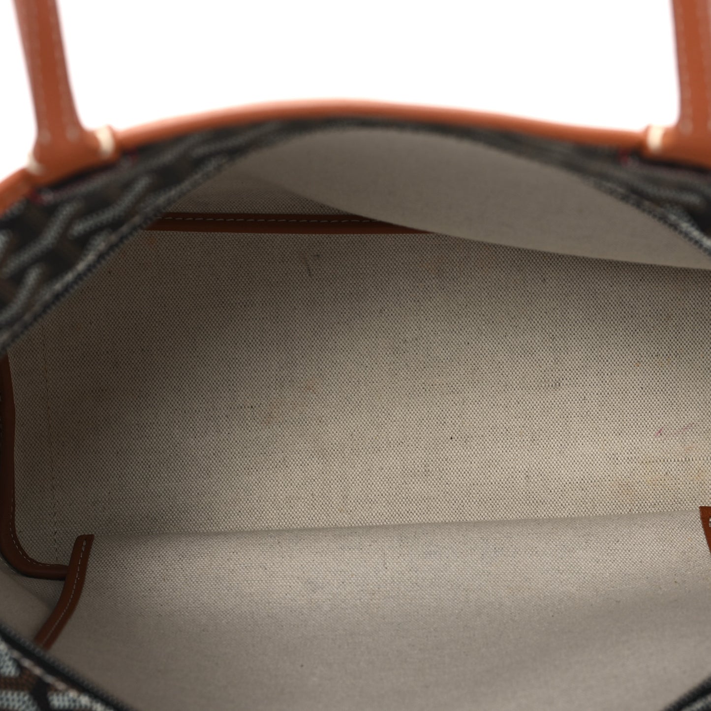 This is an authentic GOYARD Goyardine Artois PM in Black and Gold. This shoulder bag is crafted of Goyardine coated canvas with its iconic chevron pattern. The bag features brown leather trim including strap handles, top edging, and protective corner patches. The silver top zipper opens to a spacious natural canvas interior with a hanging patch pocket.Follow this item for alerts. Goyard is a registered trademark of Goyard. FASHIONPHILE is not affiliated with Goyard.