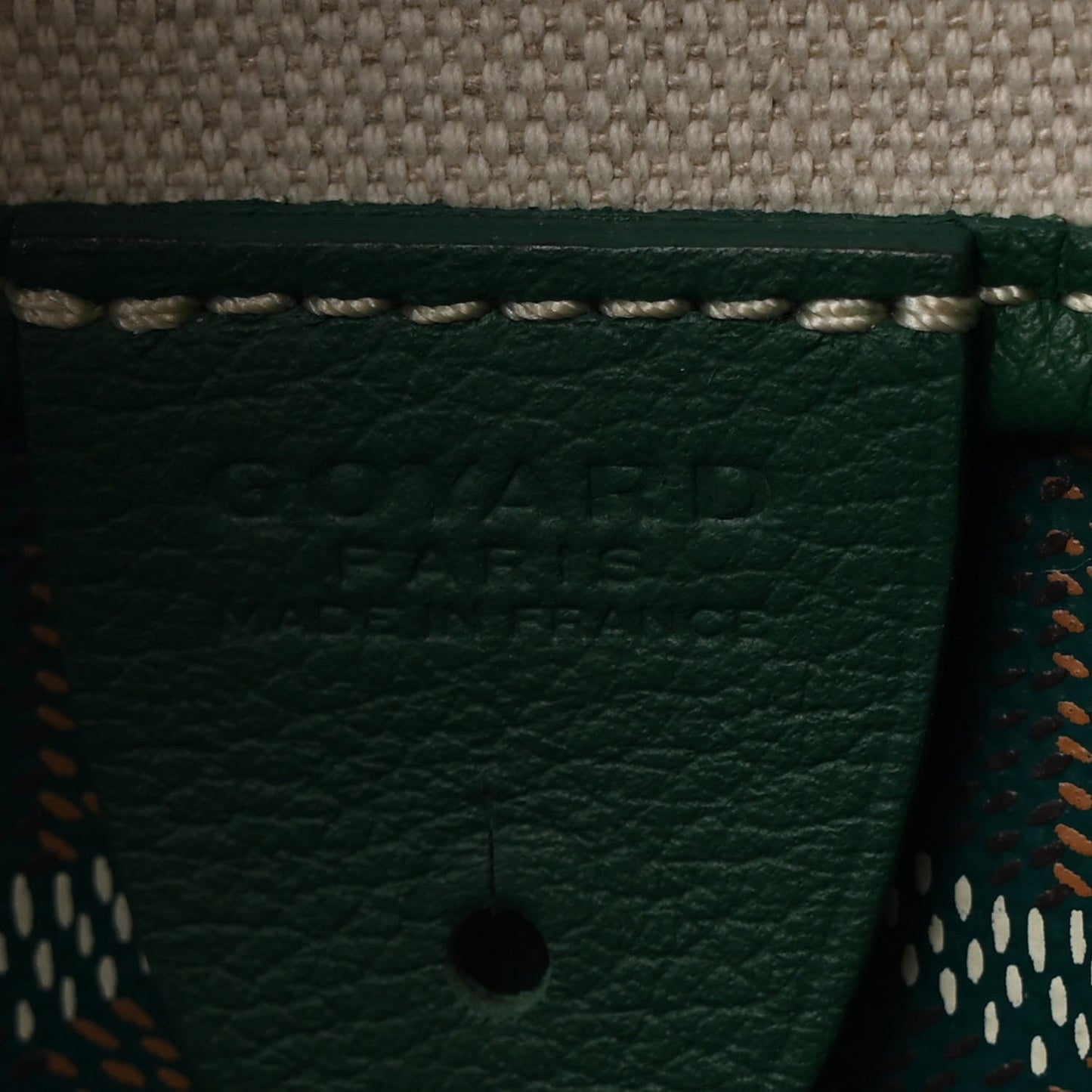 This is an authentic GOYARD Goyardine Artois PM in Green. This tote is crafted with the classic Goyard goyardine chevron-coated canvas. The bag features leather strap handles, a leather top border, and base trim. The top zipper opens to a spacious beige interior with a hanging patch pocket.Follow this item for alerts. Goyard is a registered trademark of Goyard. FASHIONPHILE is not affiliated with Goyard.