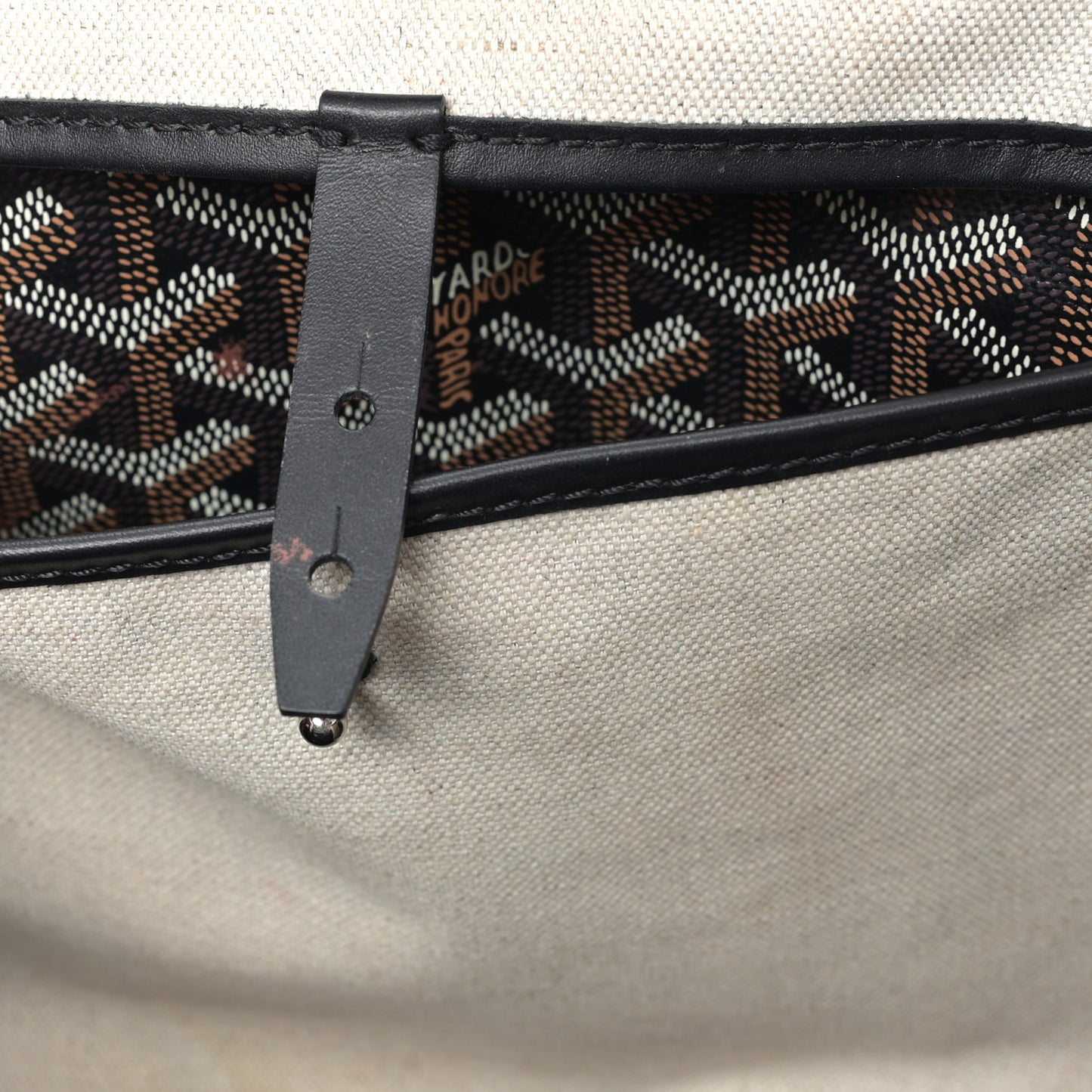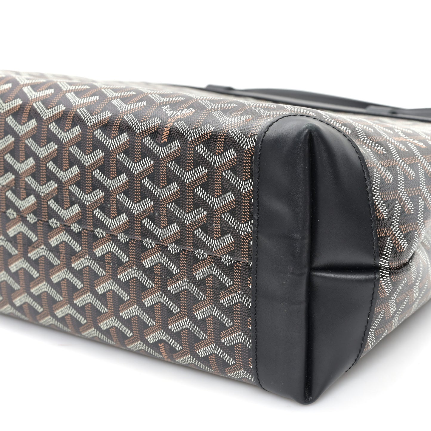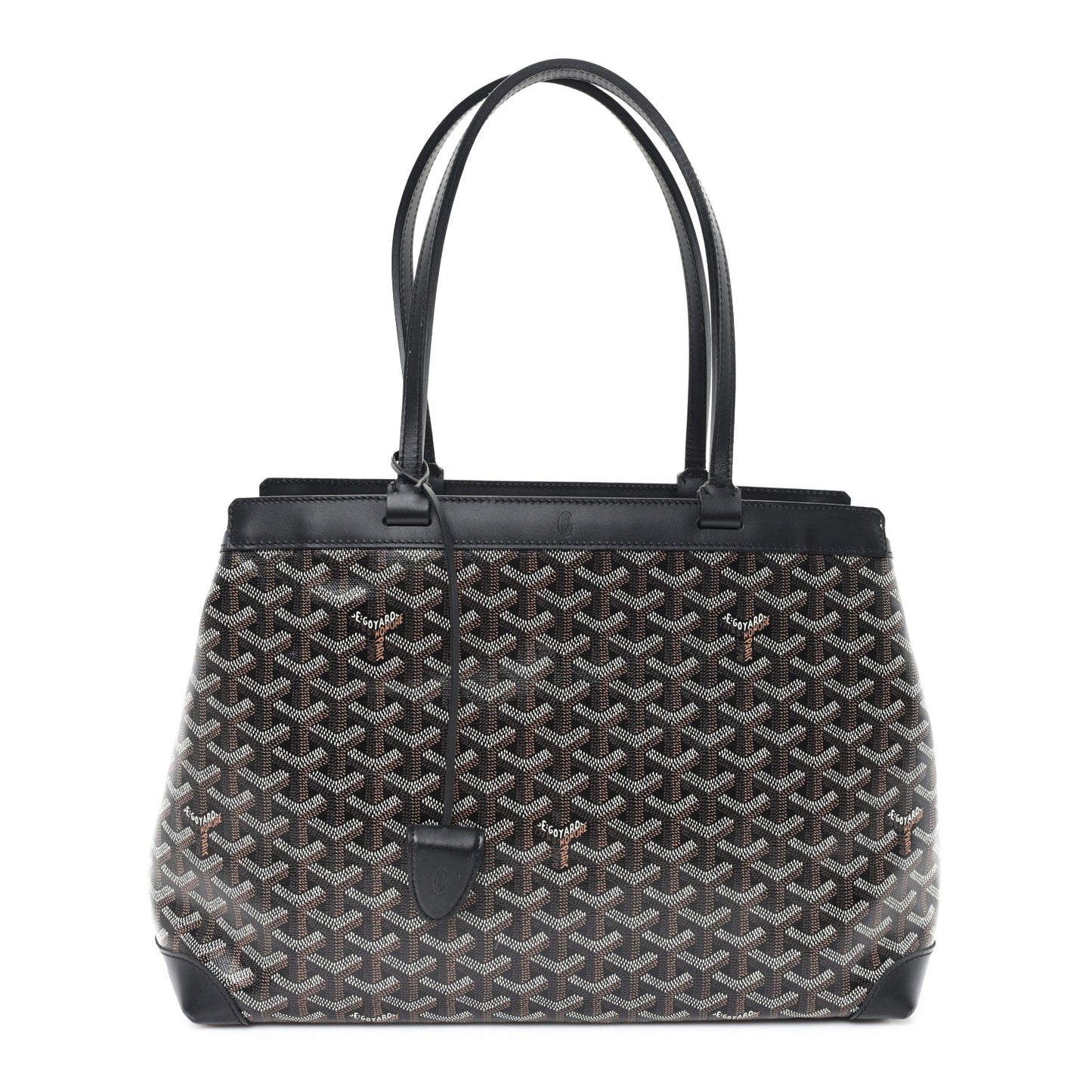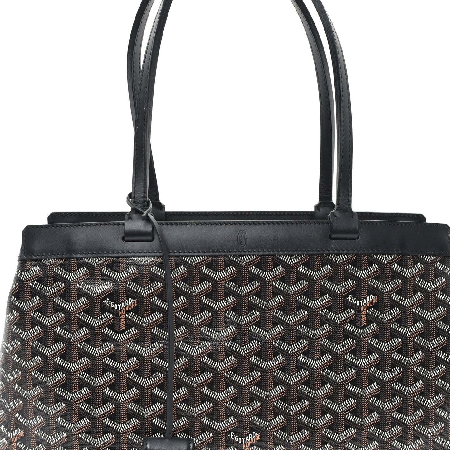 This is an authentic GOYARD Goyardine Bellechasse PM in Black. This stylish tote is crafted of Goyard monogram coated canvas in black. The bag features black leather top handles and trim. The top is open to a spacious ivory canvas interior with a hanging patch pocket.Follow this item for alerts. Goyard is a registered trademark of Goyard. FASHIONPHILE is not affiliated with Goyard.
