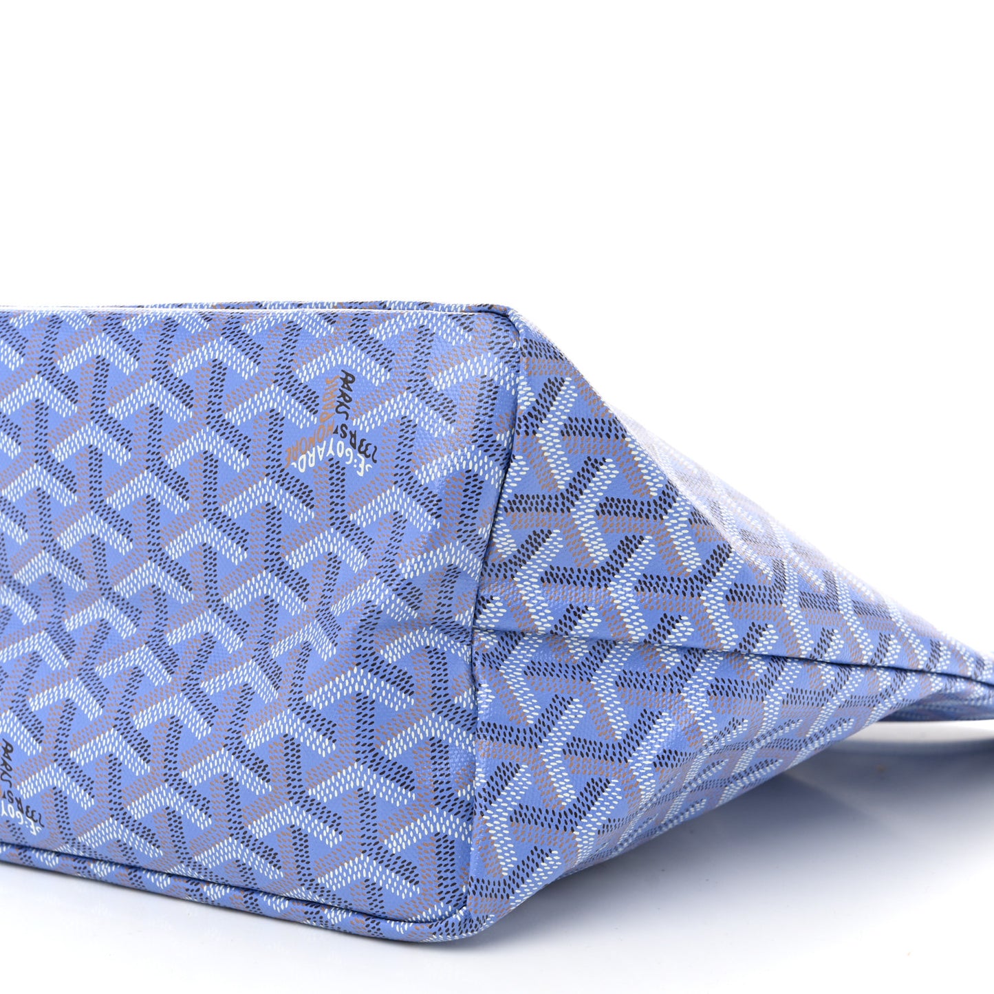 This is an authentic GOYARD Goyardine Le Jardin Saint Louis PM in Iris. This tote is crafted of Goyard's chevron coated canvas in periwinkle. It features matching leather trim and top handles. The top opens to a garden print canvas interior with a matching removable pouch.Follow this item for alerts. Goyard is a registered trademark of Goyard. FASHIONPHILE is not affiliated with Goyard.