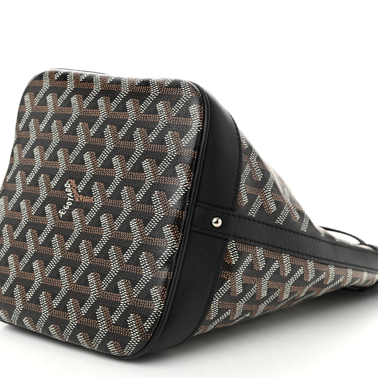 This is an authentic GOYARD Goyardine Petit Flot Bucket Bag PM in Black. This bucket bag is crafted of traditional Goyard chevron monogram on black coated canvas. The tote features black leather trim and a long shoulder strap. The top opens to a beige fabric interior.Follow this item for alerts. Goyard is a registered trademark of Goyard. FASHIONPHILE is not affiliated with Goyard.