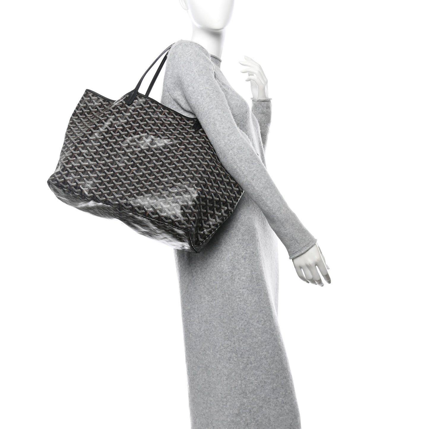 This is an authentic GOYARD Goyardine Saint Louis GM in Black. This stylish tote is crafted of Goyard's chevron monogram coated canvas in black with black leather top handles and trim. The top is open to a spacious linen interior with a matching removable pouch.Follow this item for alerts. Goyard is a registered trademark of Goyard. FASHIONPHILE is not affiliated with Goyard.