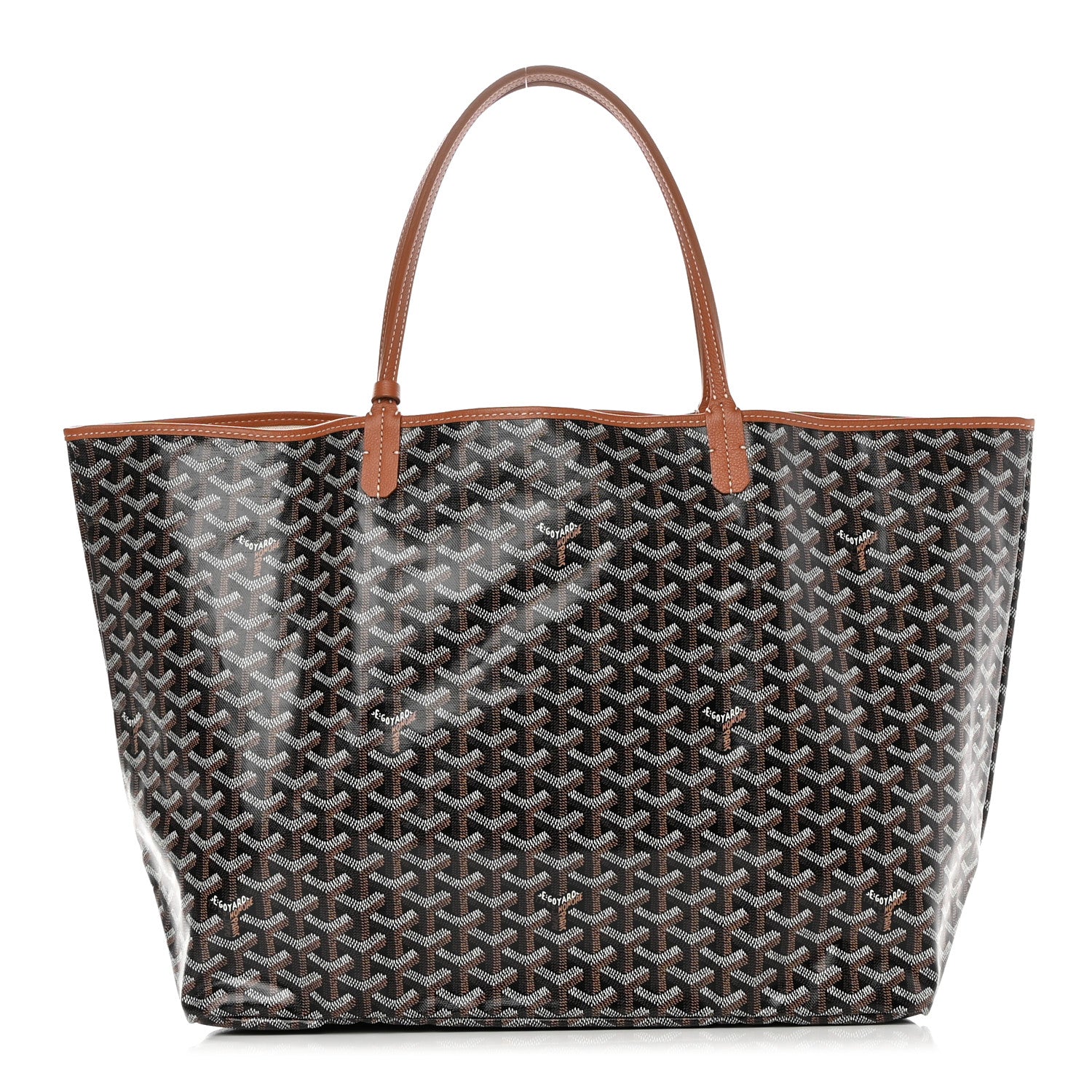 This is an authentic GOYARD Goyardine Saint Louis GM in Black and Gold. This stylish tote features the traditional Goyard chevron in black, white, and brown. The shoulder bag has thin brown leather trim along the top, leather shoulder straps. The top opens to a fabric interior.Follow this item for alerts. Goyard is a registered trademark of Goyard. FASHIONPHILE is not affiliated with Goyard.