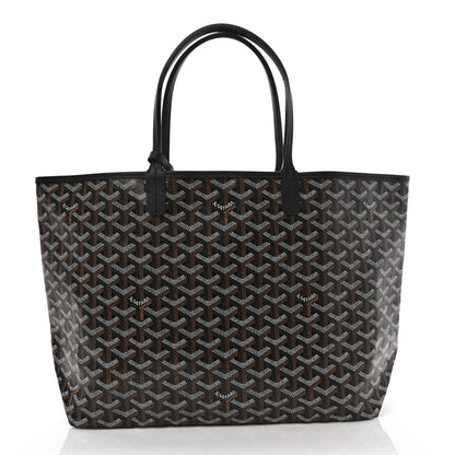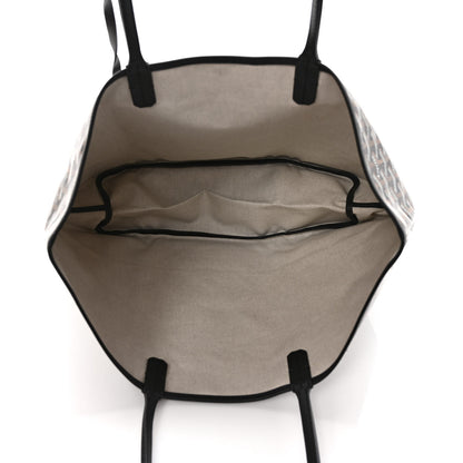 This is an authentic GOYARD Goyardine Saint Louis PM in Black. This tote is crafted of coated canvas with the classic Goyard goyardine chevron monogram in black. The bag features black leather strap handles, a removable pouch and a top border trim. The top is open to a spacious beige linen interior.Follow this item for alerts. Goyard is a registered trademark of Goyard. FASHIONPHILE is not affiliated with Goyard.