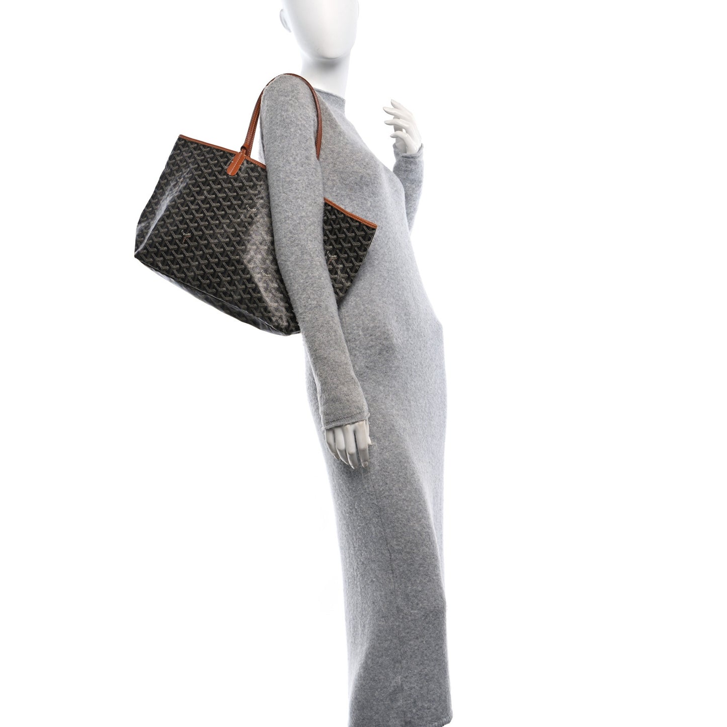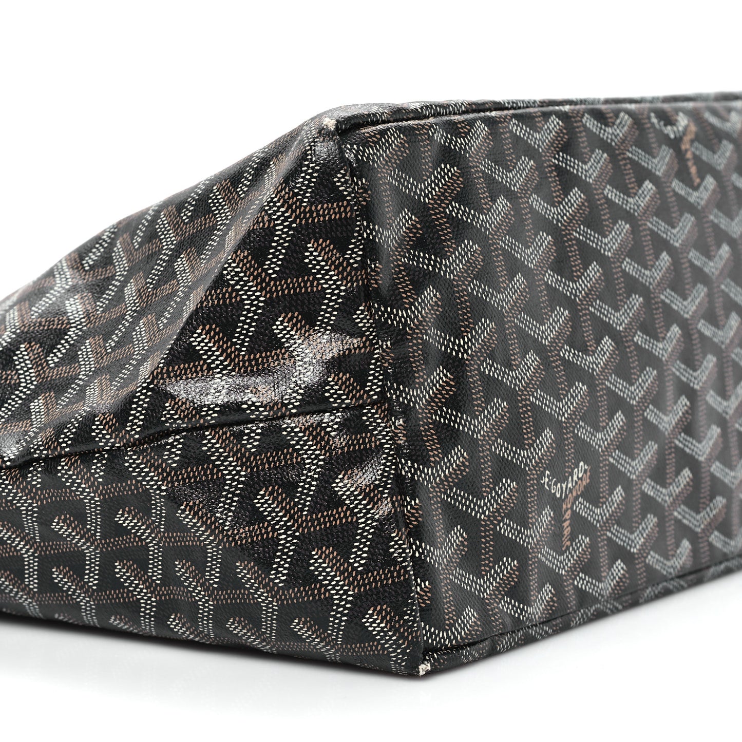 This is an authentic GOYARD Goyardine Saint Louis PM in Black and Gold. This tote is crafted of Goyard's chevron coated canvas in black with brown leather trim and top shoulder straps. The bag opens to a natural canvas interior with a removable pouch.Follow this item for alerts. Goyard is a registered trademark of Goyard. FASHIONPHILE is not affiliated with Goyard.