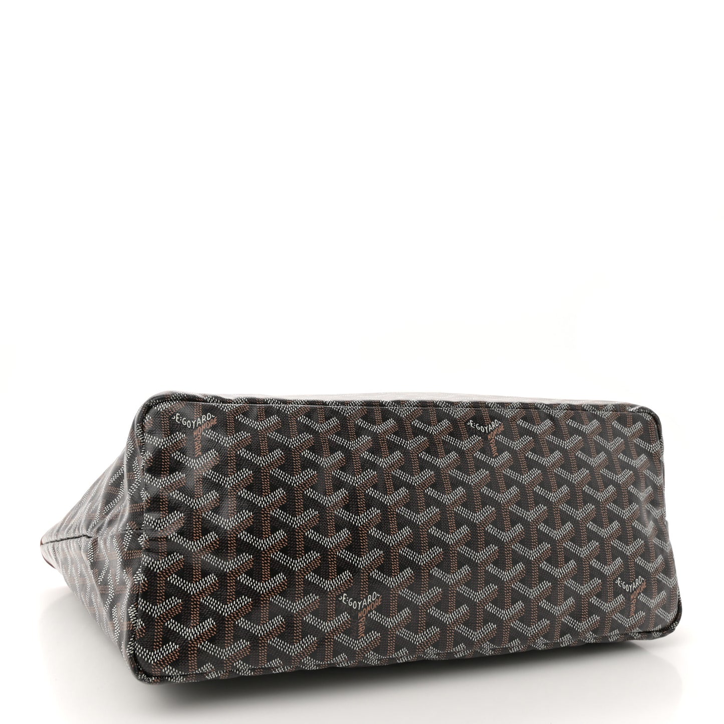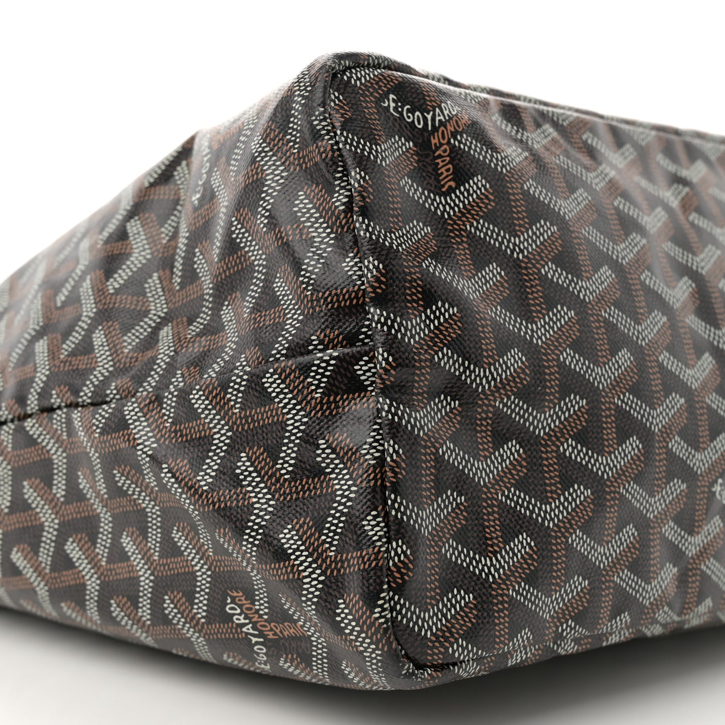 This is an authentic GOYARD Goyardine Saint Louis PM in Black and Gold. This is a stylish handbag crafted of signature Goyard coated canvas with its iconic chevron pattern. This shoulder bag features brown leather strap handles and trim, a removable matching pouch, and a broad open top that opens to a spacious off-white canvas interior.Follow this item for alerts. Goyard is a registered trademark of Goyard. FASHIONPHILE is not affiliated with Goyard.
