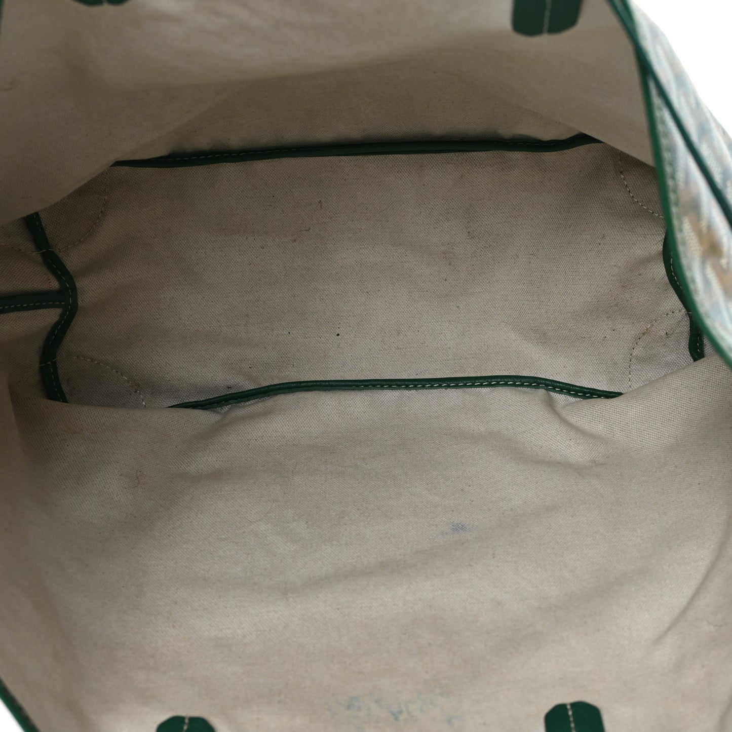 This is an authentic GOYARD Goyardine Saint Louis PM in Green. This tote is crafted of Goyard's chevron coated canvas in green with matching top handles and trim. The top is open to a canvas interior with a matching removable pouch.Follow this item for alerts. Goyard is a registered trademark of Goyard. FASHIONPHILE is not affiliated with Goyard.