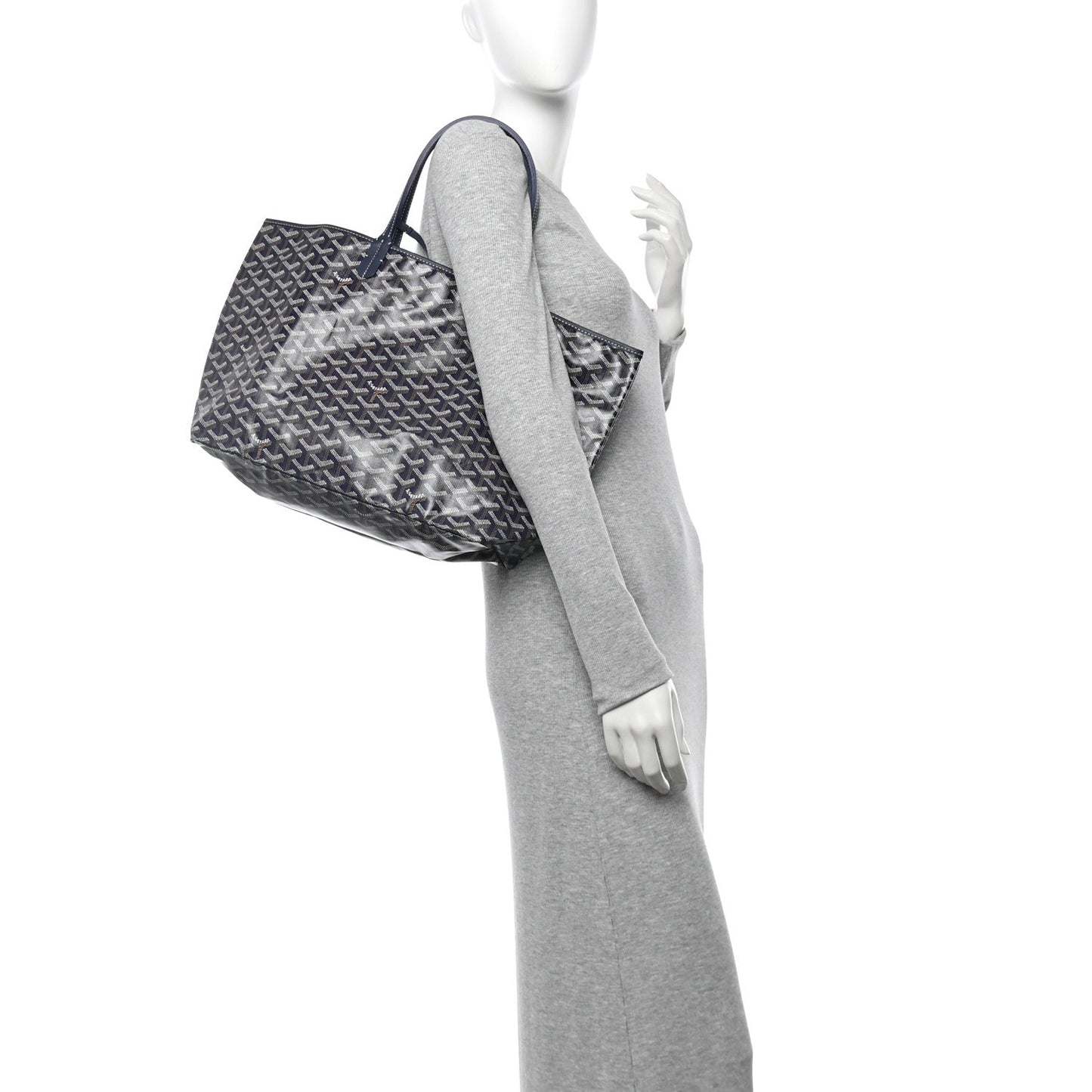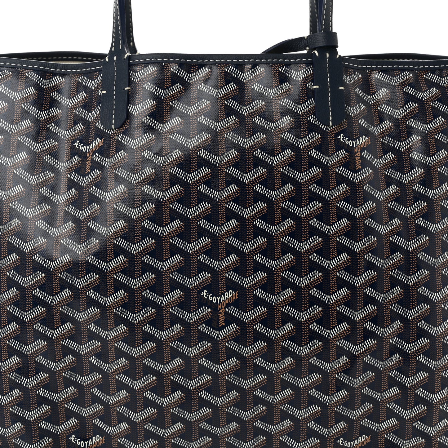 This is an authentic GOYARD Goyardine Saint Louis PM in Navy. This tote is crafted of Goyard goyardine monogram chevron canvas in dark blue with leather detailing. This bag features leather strap handles, an open top and a spacious natural canvas interior with a removable pouch.Follow this item for alerts. Goyard is a registered trademark of Goyard. FASHIONPHILE is not affiliated with Goyard.