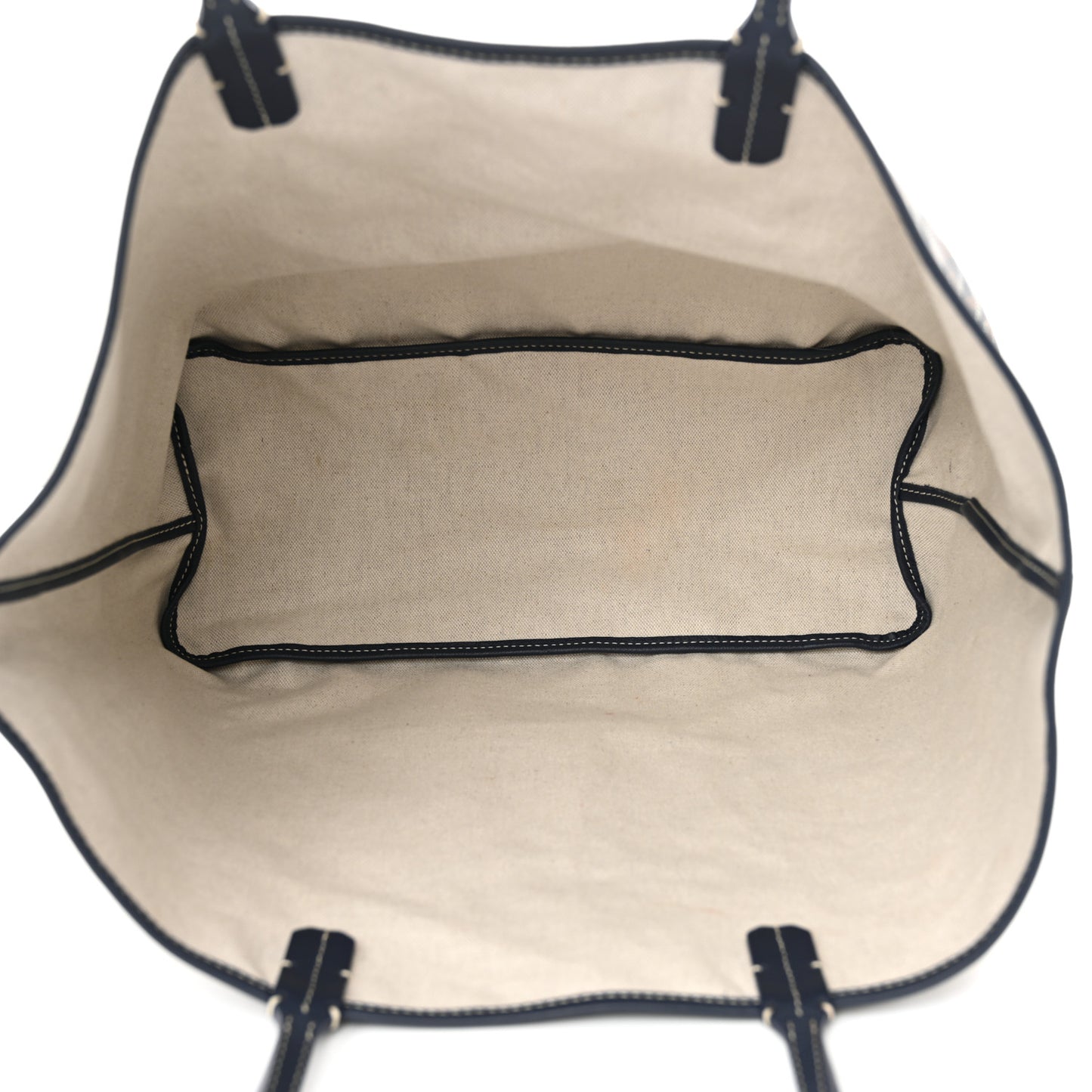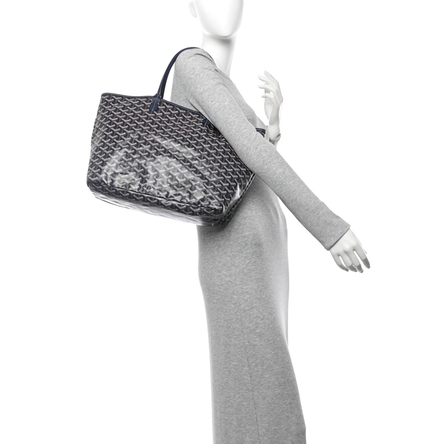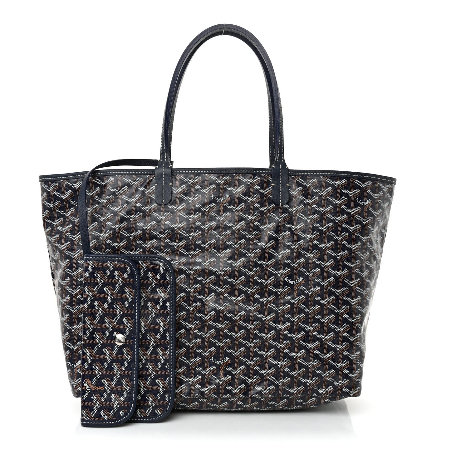 This is an authentic GOYARD Goyardine Saint Louis PM in Navy. This tote is crafted of Goyard's goyardine monogram chevron coated canvas in dark blue with matching navy leather trim and top handles. The top is open to a canvas interior with a matching removable pouch.Follow this item for alerts. Goyard is a registered trademark of Goyard. FASHIONPHILE is not affiliated with Goyard.