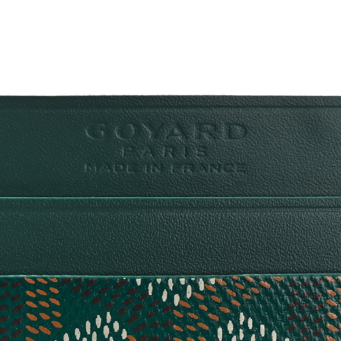 This is an authentic GOYARD Goyardine Saint Sulpice Card Holder in Green. This cardholder is crafted of classic Goyard goyardine chevron coated canvas in green with green leather trim. It features two card slots on either side of the center card slot, each lined in green and yellow leather.Follow this item for alerts. Goyard is a registered trademark of Goyard. FASHIONPHILE is not affiliated with Goyard.