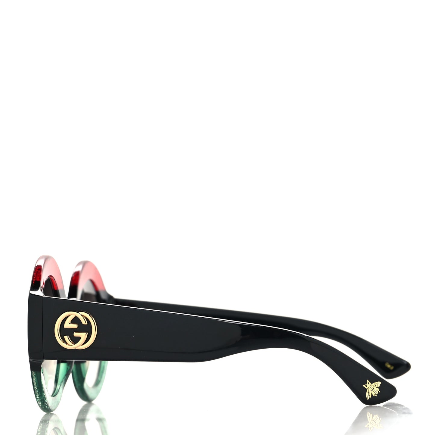 Gucci/ Accessories/ Sunglasses /Gucci Acetate Glitter Round Frame GG0084S Sunglasses Red Green